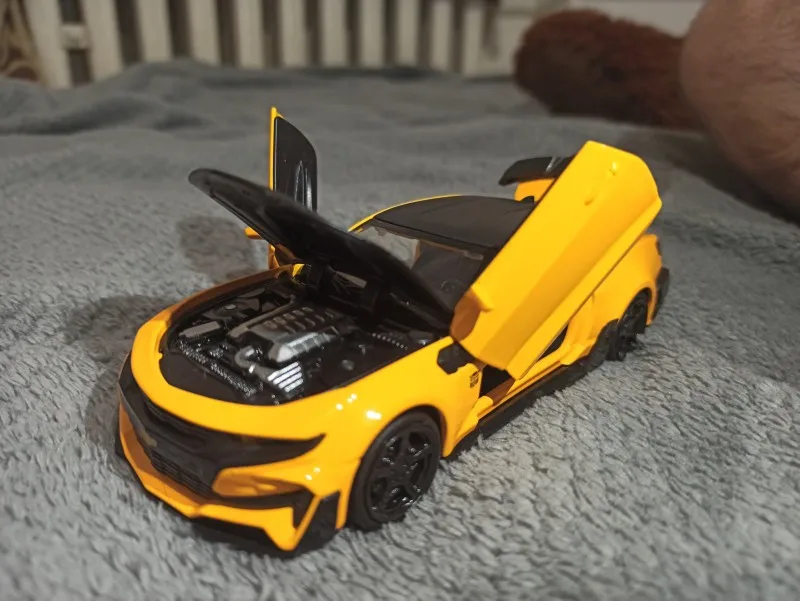 Buen material, metálico, de momento mi hijo lo ha tirado varias veces al suelo y aguanta bien. Bien de pintura y color, buena réplica. Retrocedes y sueltas y corre solo. No consigo que enciendna las lices, por eso no tiene 5 estrellas.