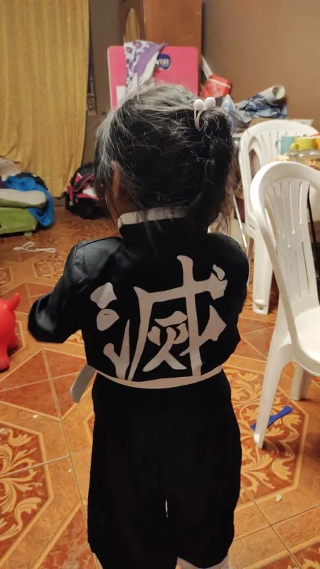 El traje está muy lindo, mido 1.49 y el largo está bien, solo que las mangas están un poco cortas ya que no me tapa todo el brazo.