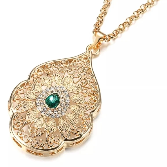 Kinel-collar con colgante largo de Color dorado marroquí para mujer, flor de caftán, bisutería étnica india, joyería de boda, venta al por mayor