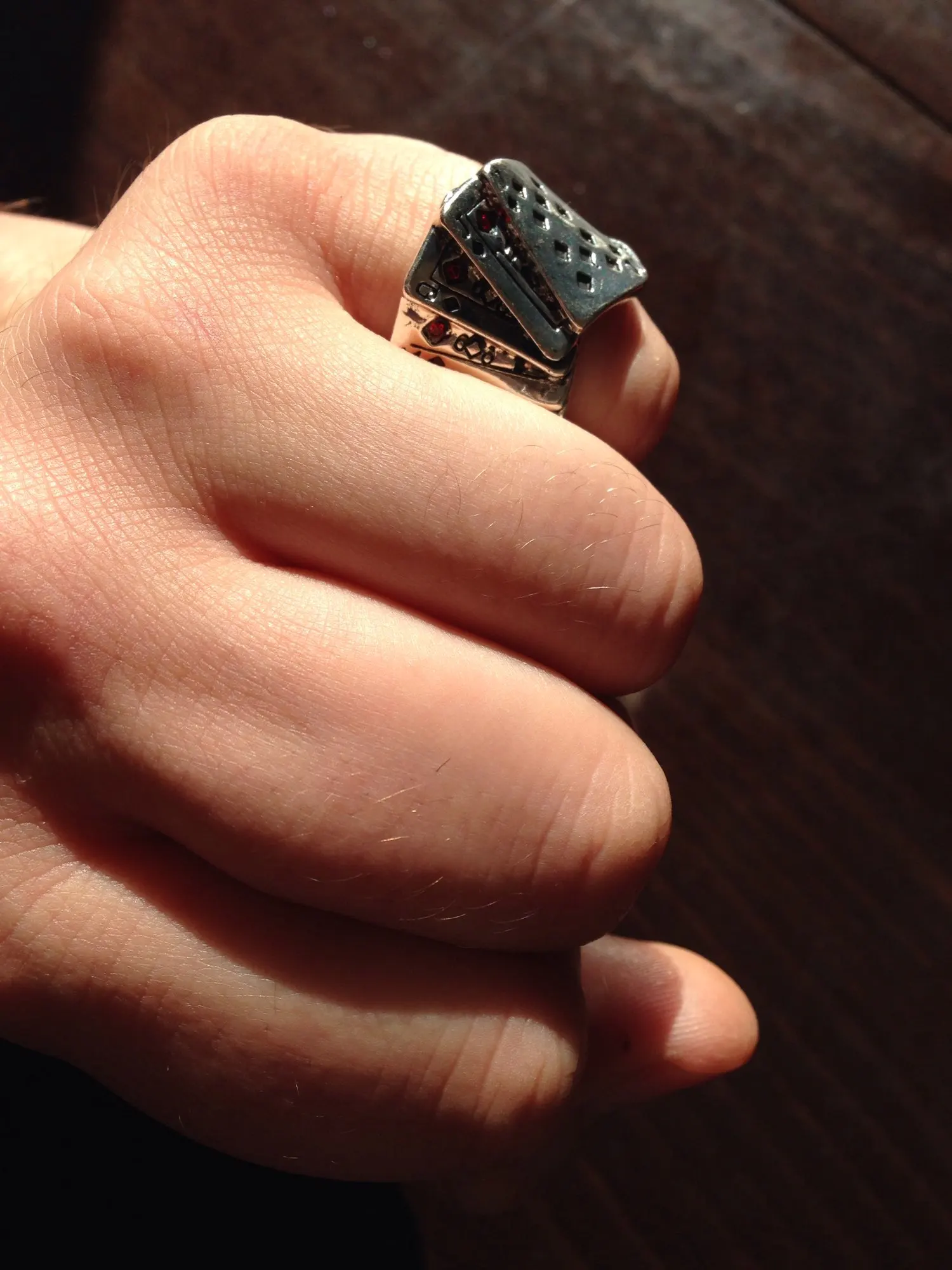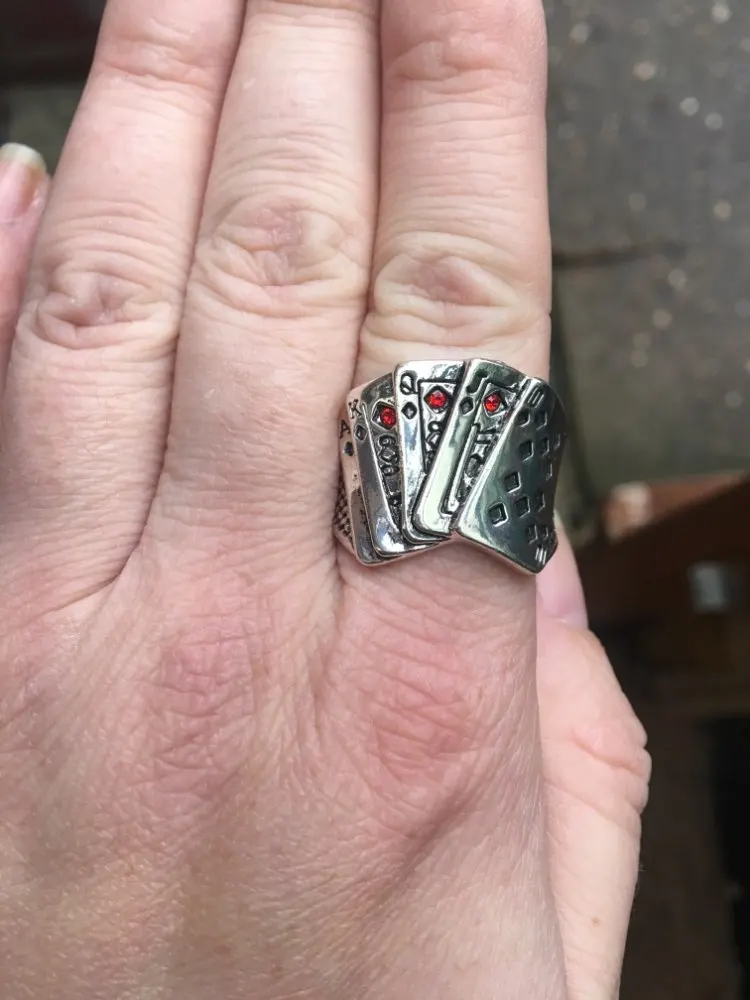 Kinel Poker anillo de Color plata maciza anillos Punk Rock para hombres y mujeres escalera negro sello de tamaño 6-9