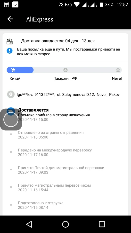 Valoración de Aliexpress: