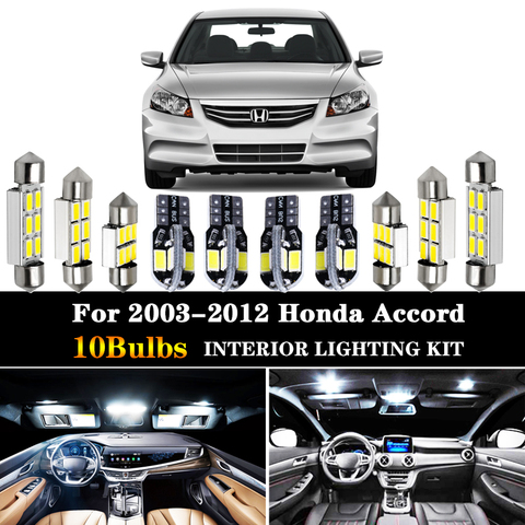 Kit de bombillas LED para coche, accesorios de lámpara de coche, Kit de paquete de interiores para Honda 2003-2012, accesorios para Accord Map Dome, luz de placa de puerta, 10 Uds.