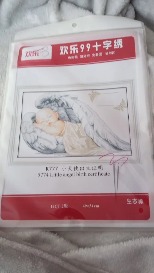 Kit de bordado de punto de cruz con certificado de nacimiento de ángel pequeño, lienzo, 11CT, 14CT, juegos de costura, decoración del hogar