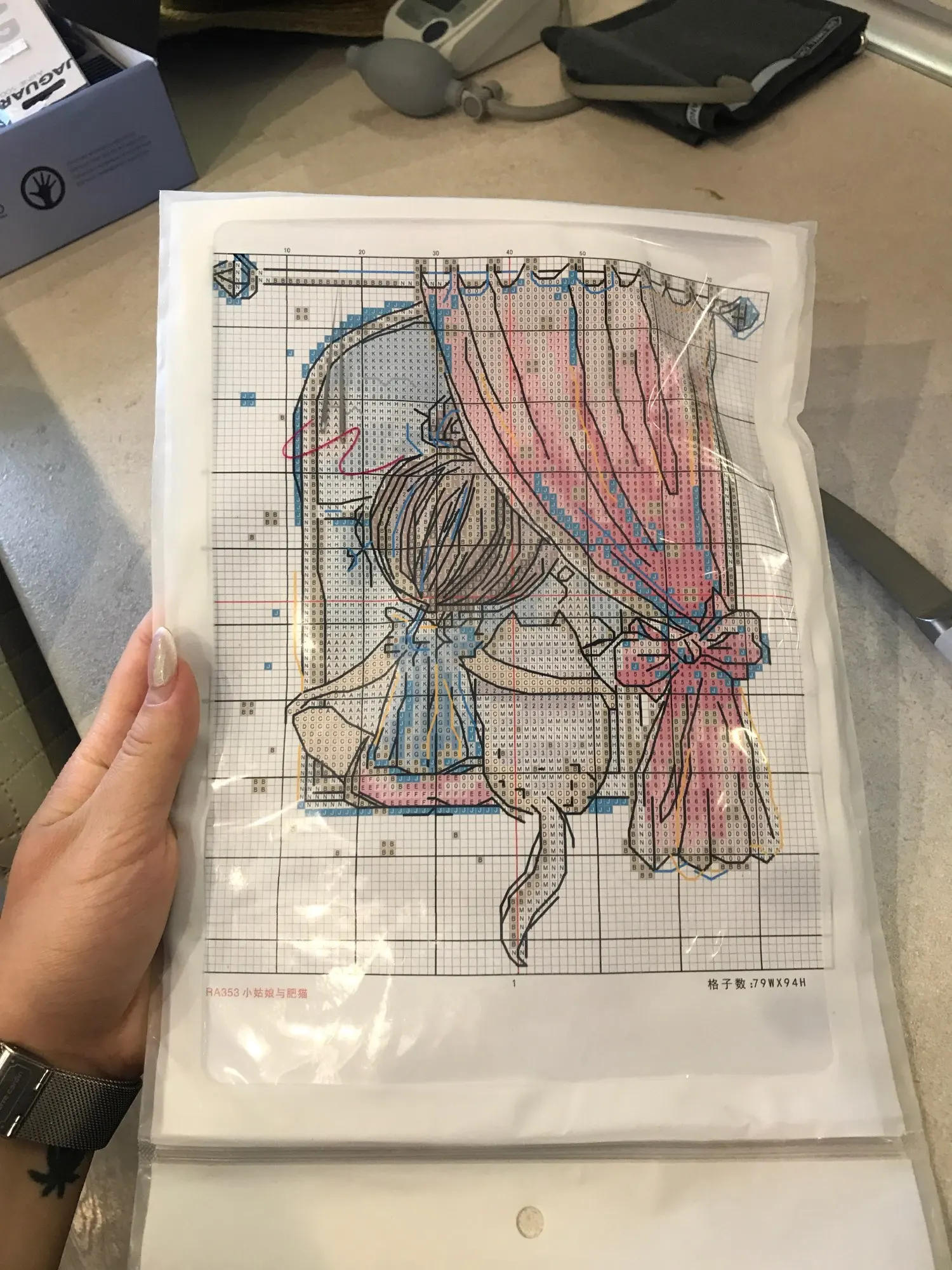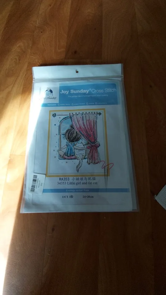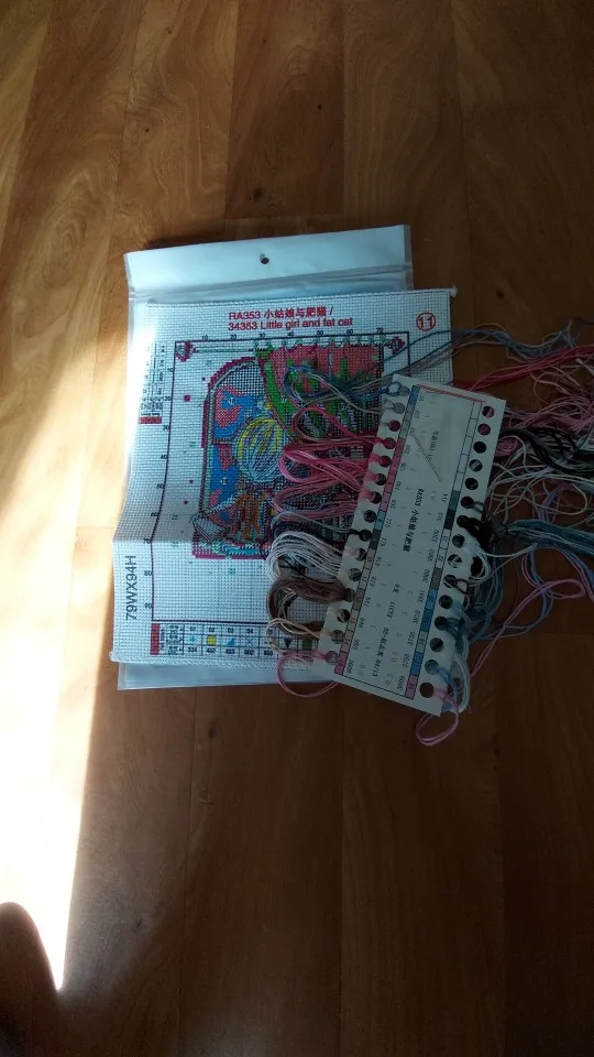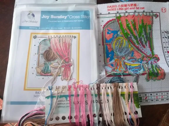 Kit de punto de cruz de niña y gato gordo, lienzo estampado con cuentas de 14ct, 11CT, bordado artesanal, costura