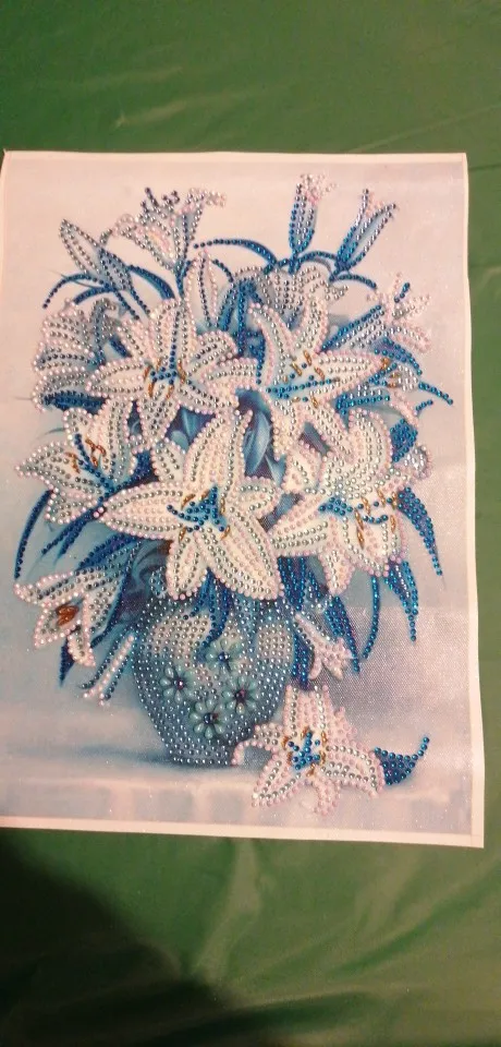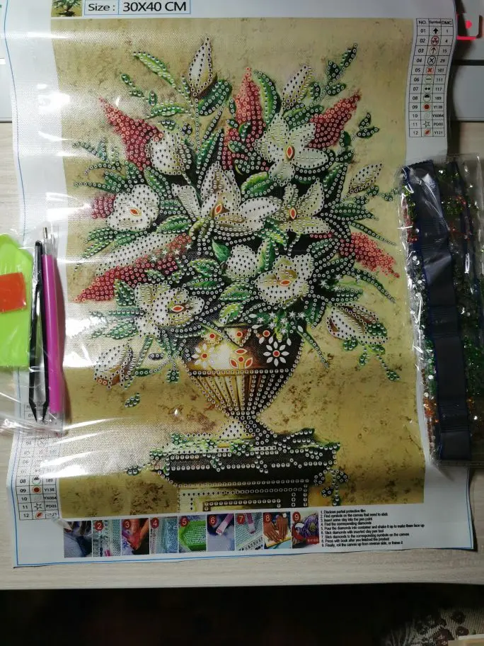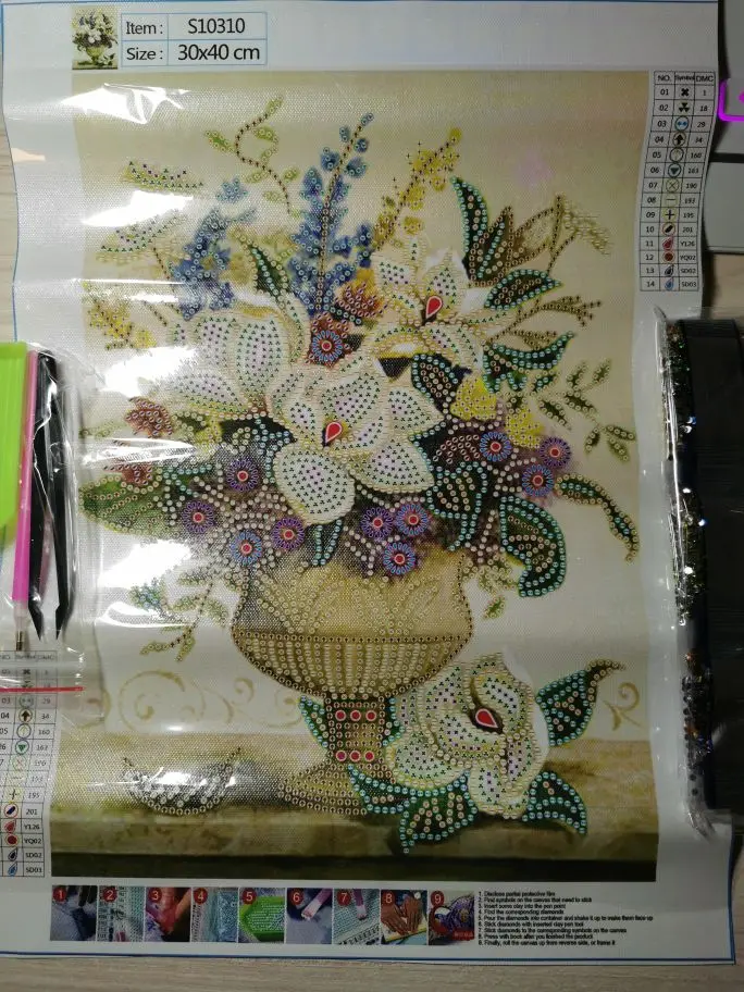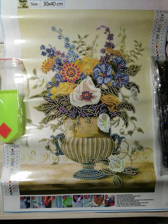 Kit de punto de cruz parcial 5D con pintura de flores, jarrón, bordado de diamantes, pintura de Forma especial, taladro