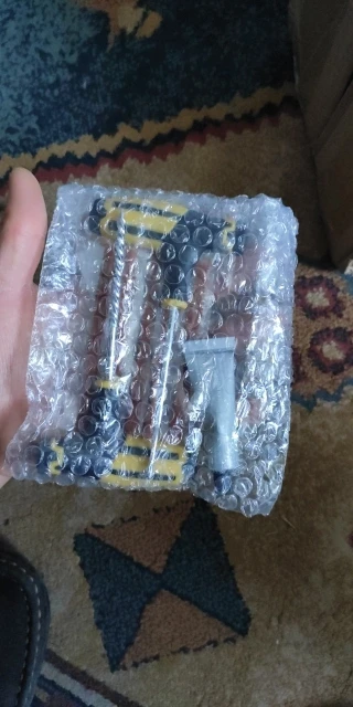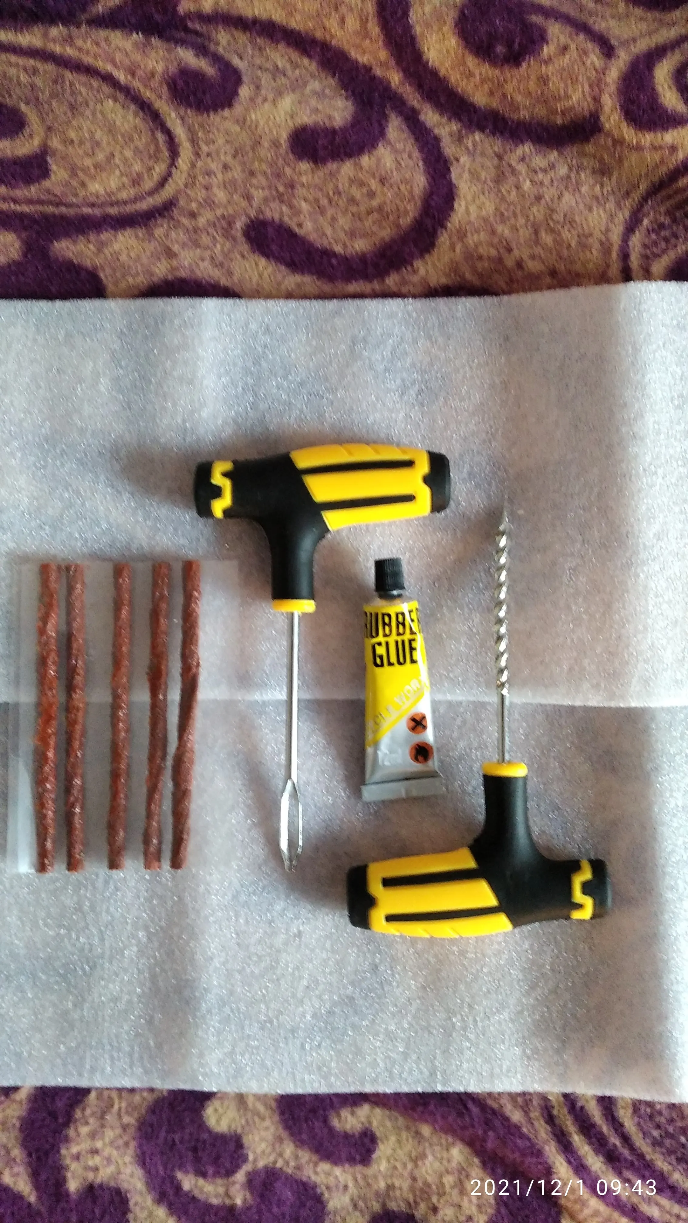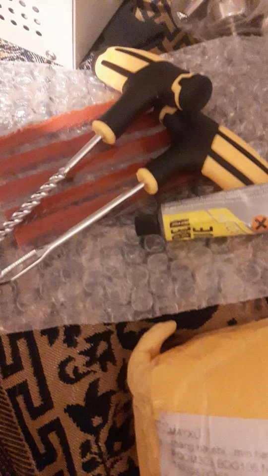 El artículo tardó más de lo acordado en la fecha de entrega. No parece muy fuerte el punzón, pero si en caso de necesidad consigo reparar un pinchazo, merecerá la pena. El bote de pegamento parece muy duro, igual está seco, no obstante no abriré hasta que lo necesite.