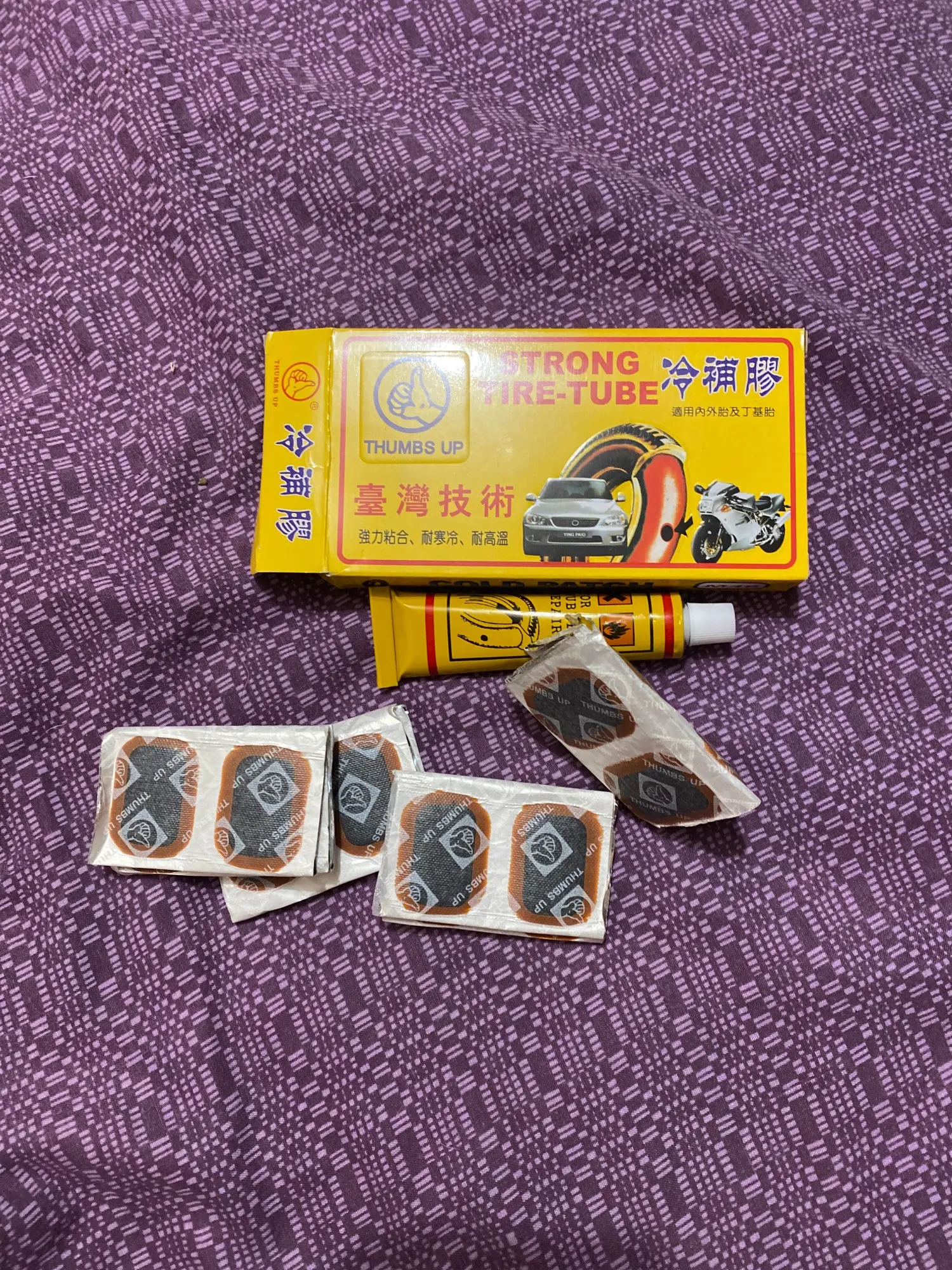 Kit de reparación de parches para neumáticos de bicicleta, 48 Uds., thumbup, pegamento para neumático, tubo de goma, perforaciones