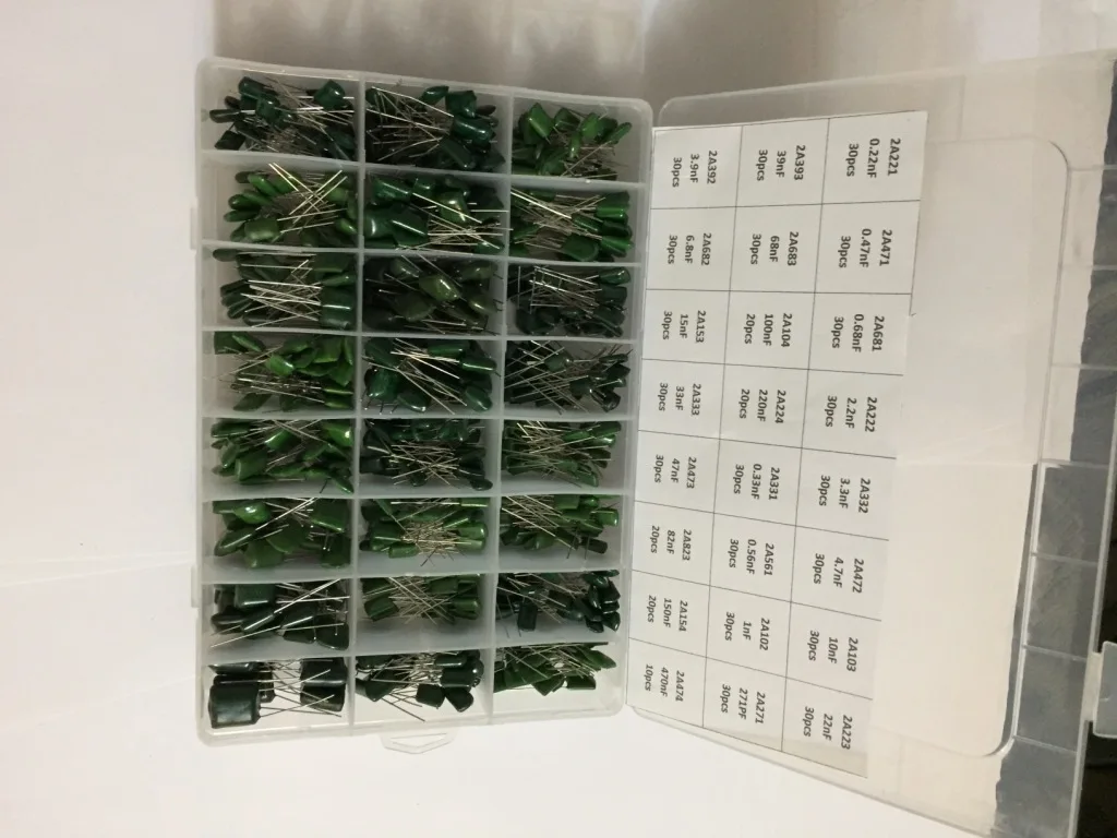 Kit surtido de condensadores de película de poliéster Mylar de 24 valores, 700 unidades, 0.22NF a 470NF / 100V