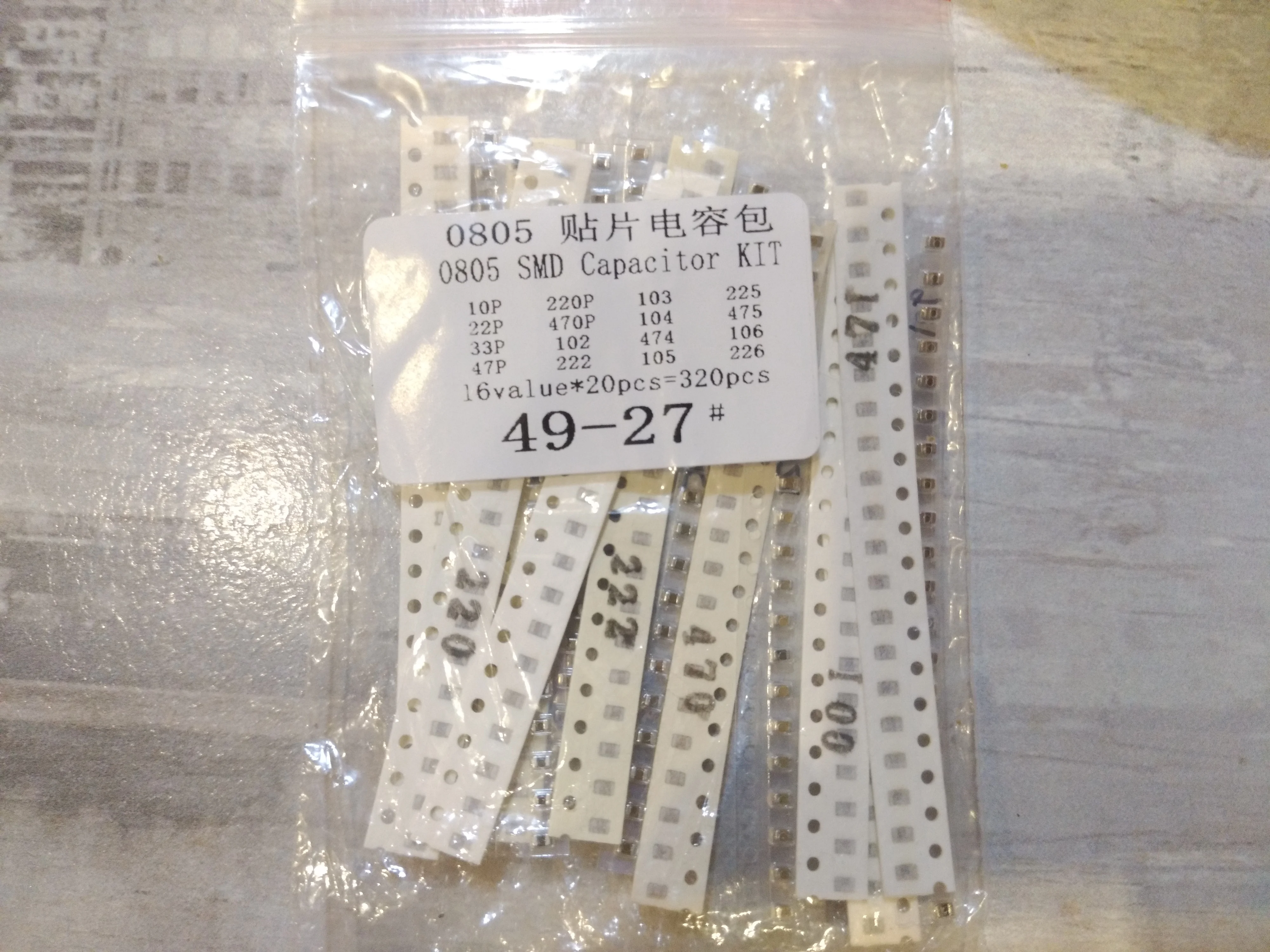 Kit surtido de condensadores SMD, 16 valores * 20 piezas = 3 20 piezas 0805, 10PF-22UF
