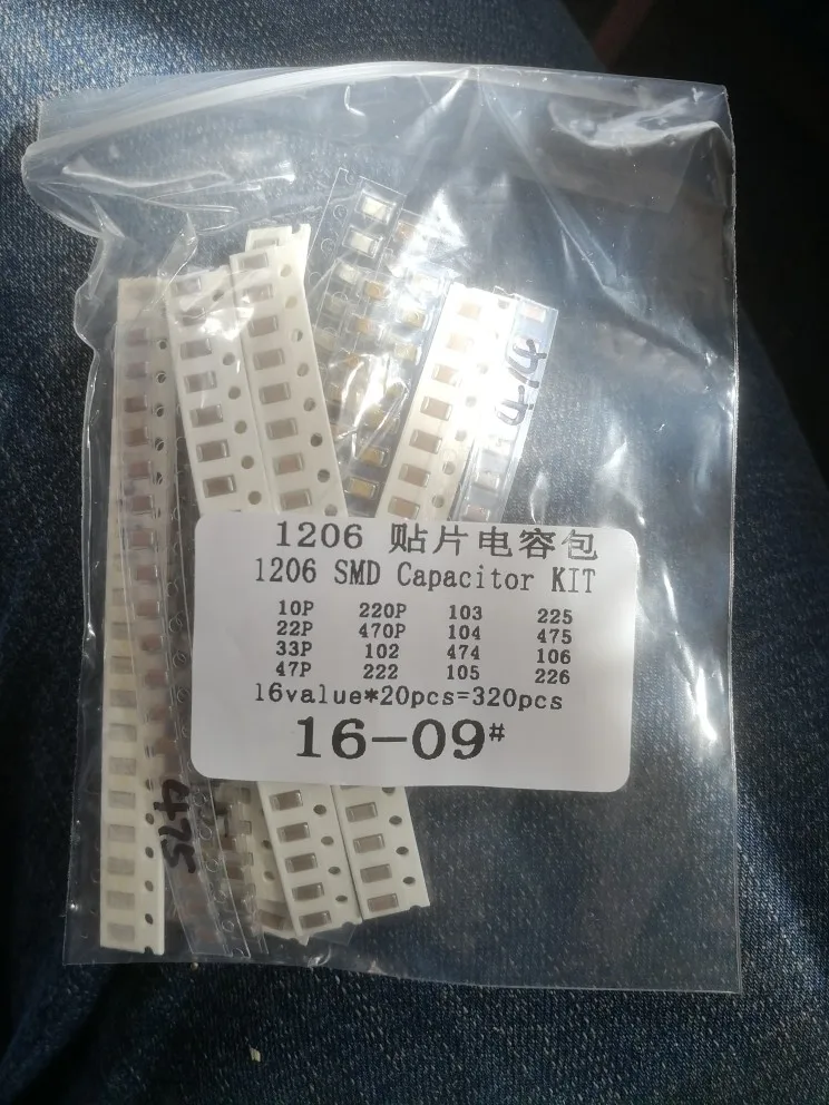 Kit surtido de condensadores SMD de 1206, 16valores * 20 piezas = 3 20 piezas 10PF-22UF kit de muestras