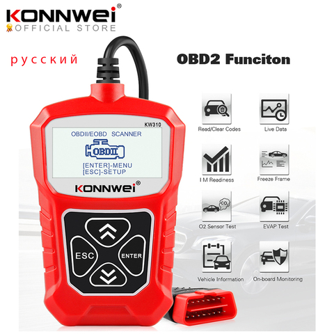 KONNWEI-Herramienta de diagnóstico automotriz KW310, autoescáner OBD2, revisión de sistemas de coche, interfaz de lenguaje en ruso, lector de códigos mejor que el ELM327