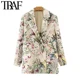 KPYTOMOA 2022 mujeres de moda Oficina Blazer estampado Floral Vintage abrigo de manga larga bolsillos ropa femenina Chic Tops