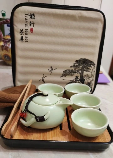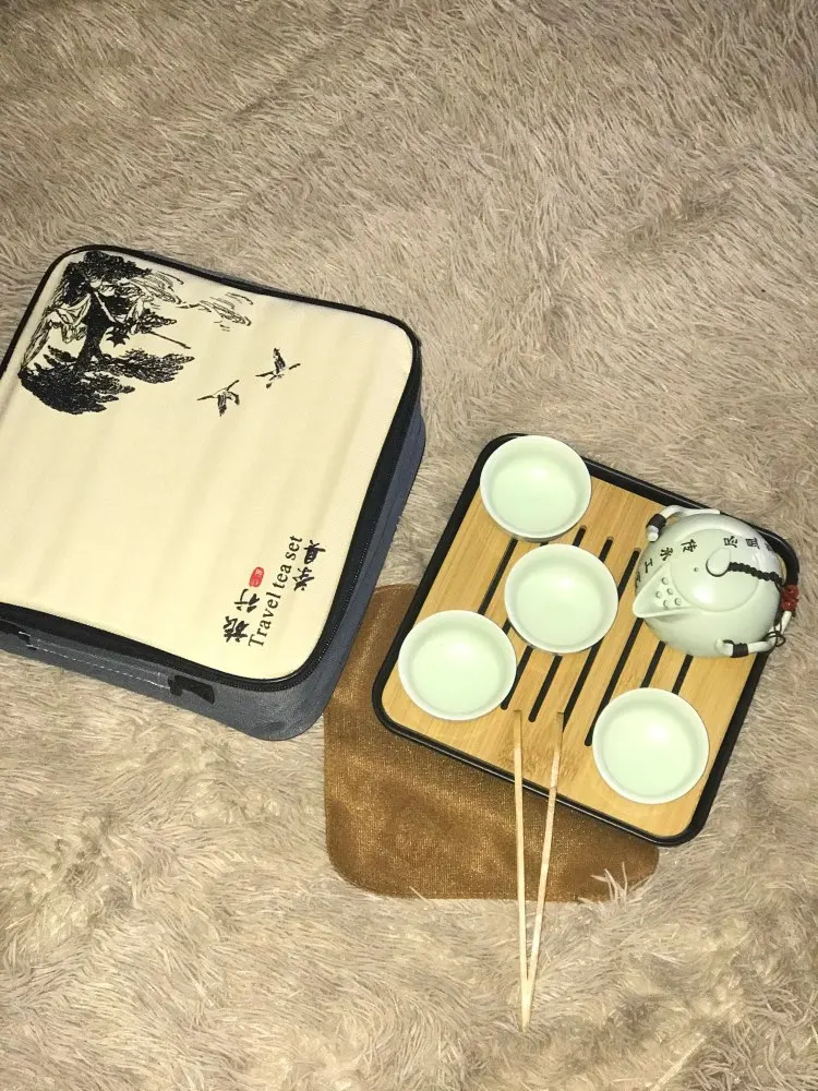 Kungfú chino Teaset de cerámica taza de té portátil de viaje al aire libre de tazas de té Gaiwan de la ceremonia del té taza de té con bolsa de Buen regalo