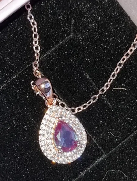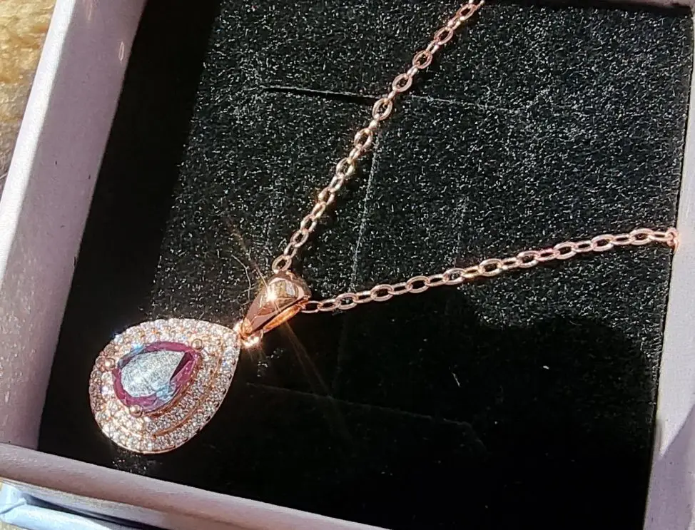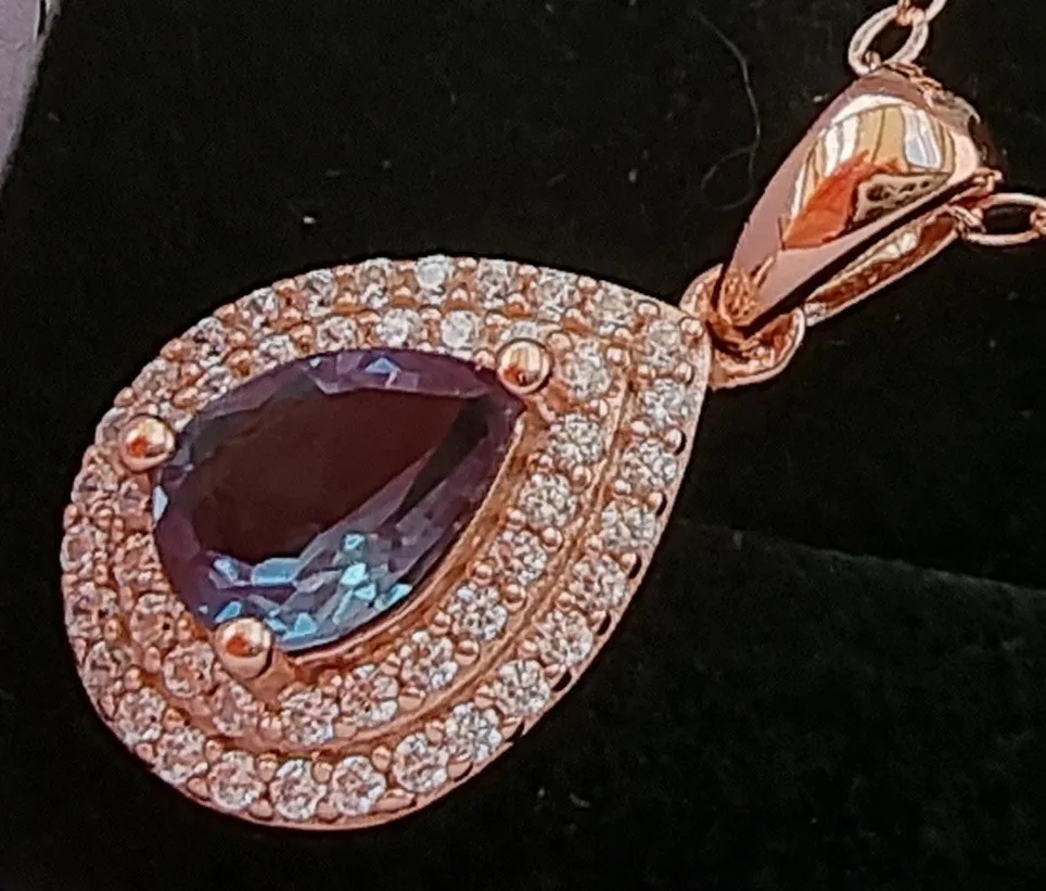 Kuololit 585 oro rosa 1CT laboratorio alejandrita colgante de piedras preciosas para mujeres genuino 925 plata esterlina cambio de Color collar de piedras preciosas