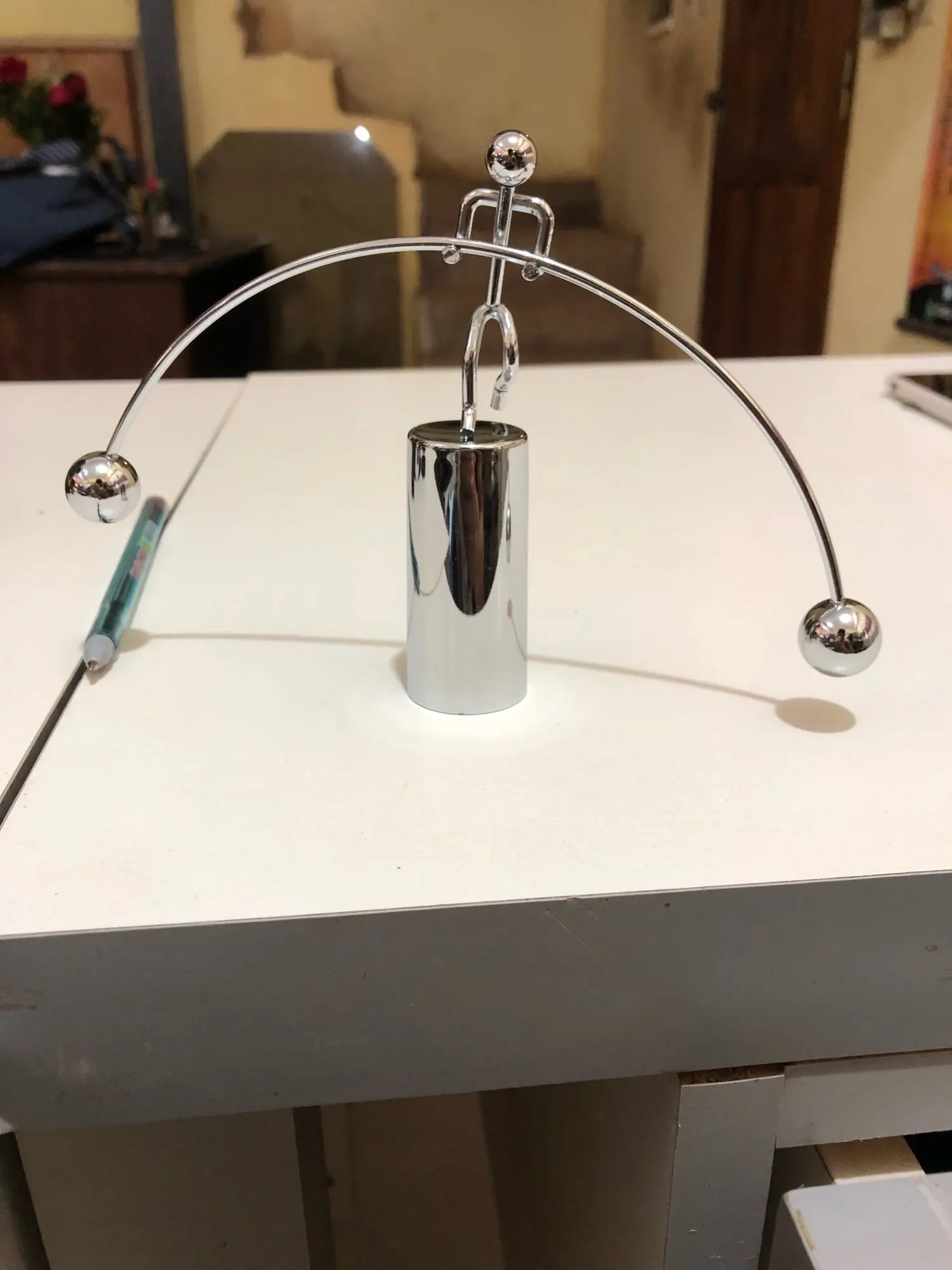 La bola del Balance de la casa decoración pequeño hombre de hierro de levantamiento de pesas de Newton perpetuo equilibrio hombre de Metal Hogar vaso de juguete de escritorio