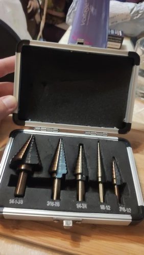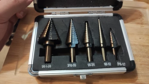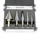 La llegada de la Alta Calidad 5 unids/set HSS COBALTO con MÚLTIPLES ORIFICIOS 50 Tamaños STEP DRILL BIT SET w/Case de Aluminio