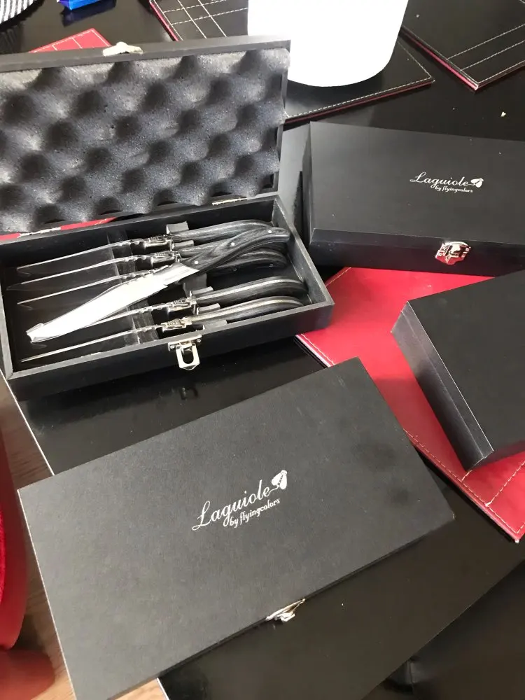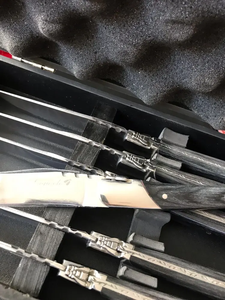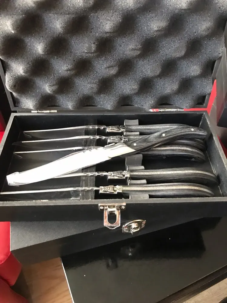 Laguiole-cuchillos de mesa de acero inoxidable para carne, mango de madera negra, vajilla de fiesta de casamiento, 6 uds.