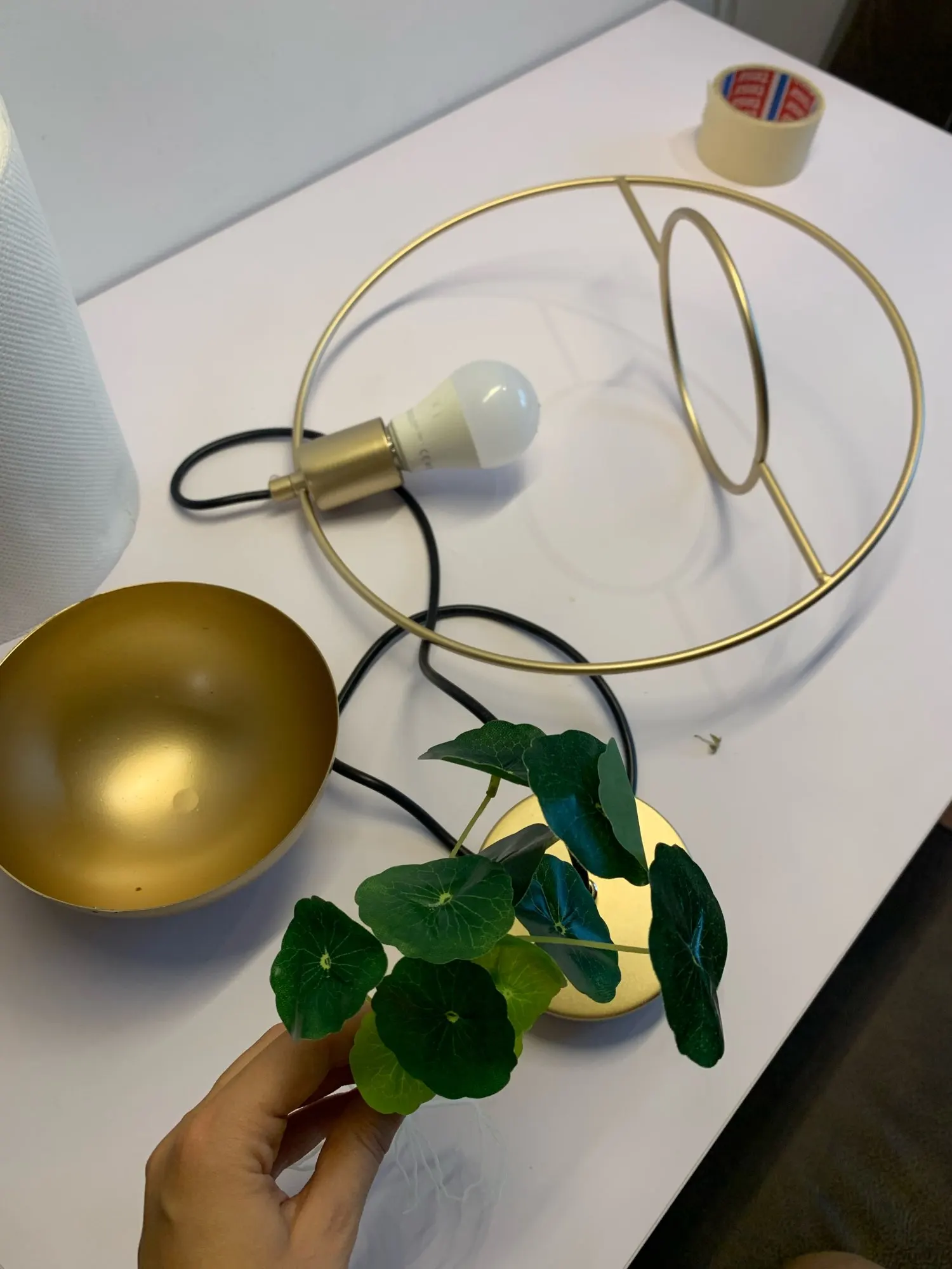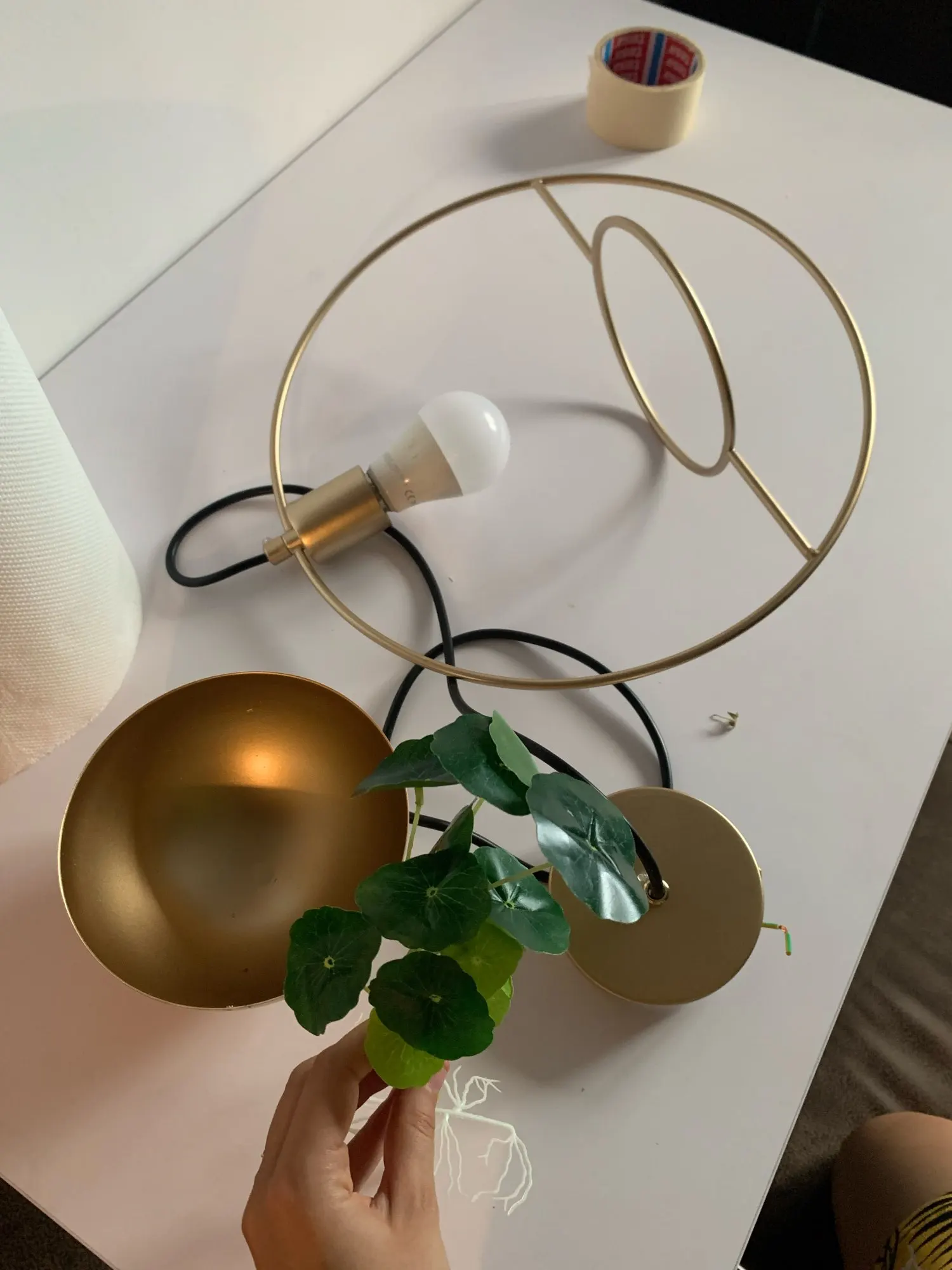 Lámpara colgante de estilo nórdico, luminaria moderna con anillo de metal dorado para cultivo de macetas