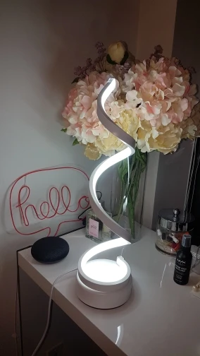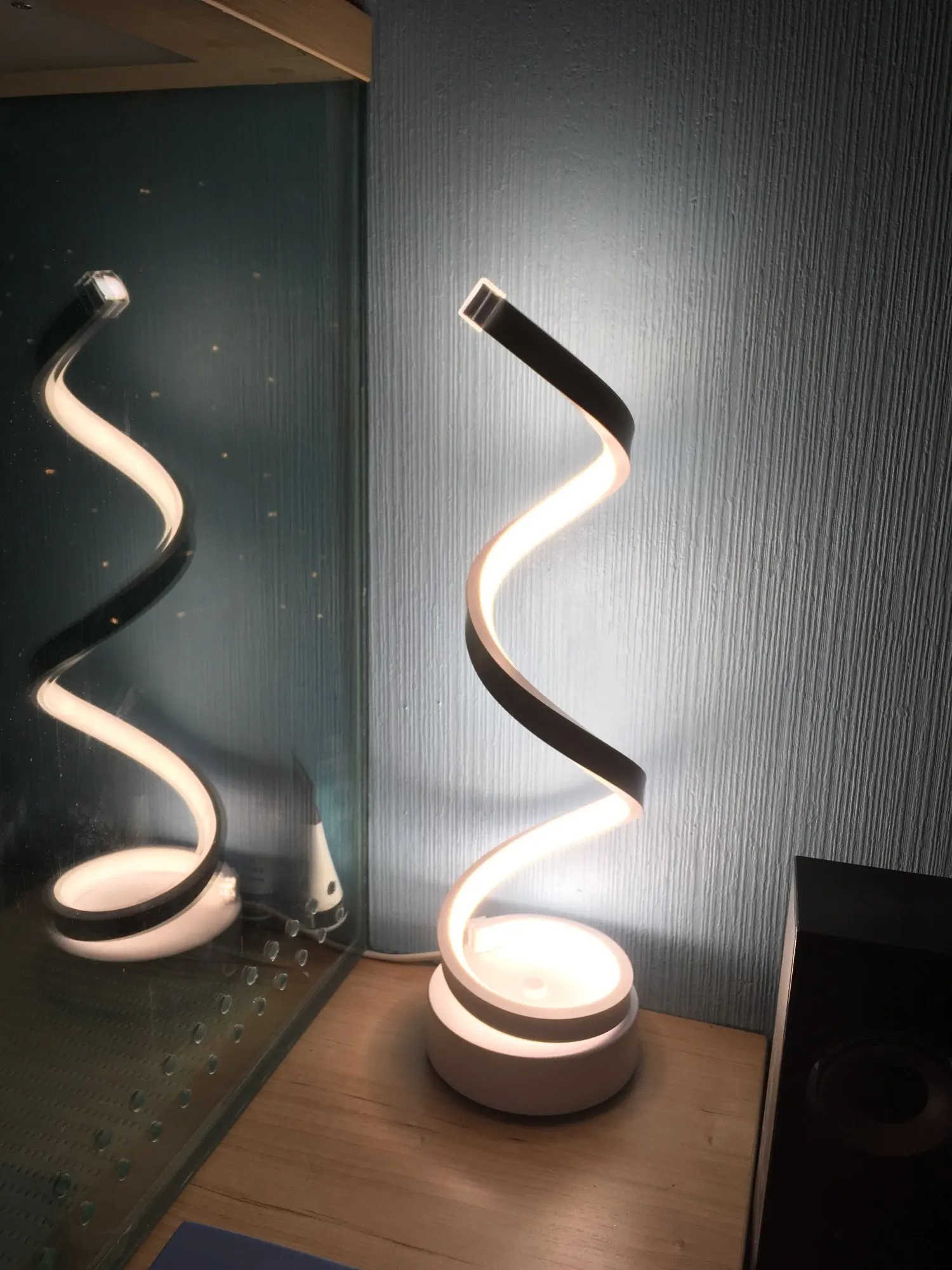 Lámpara de mesa de Espiral de LED moderna, lámpara de mesita de noche de escritorio curvada, sala de estar fría para luz blanca cálida, dormitorio, iluminación de lectura