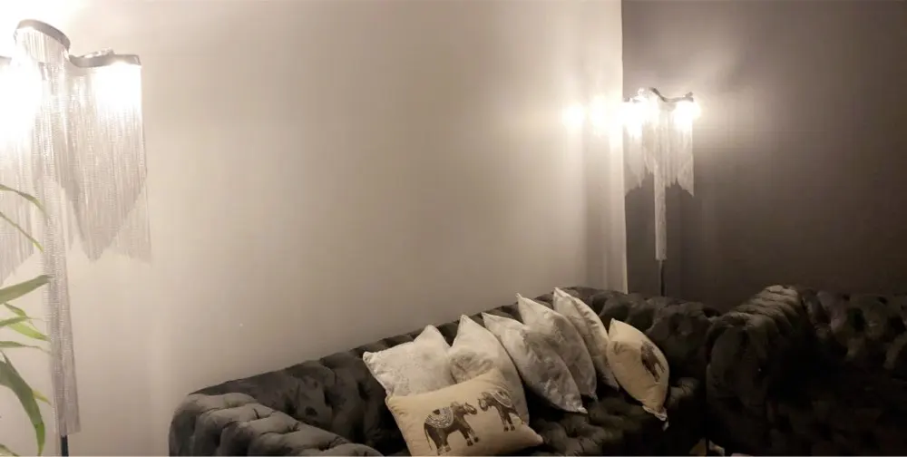 Lámpara de pie moderna de plata con flecos, lámpara led para sala de estar, lámpara de mesa con flecos de plata, decoración de metal para el suelo, accesorio de cocina