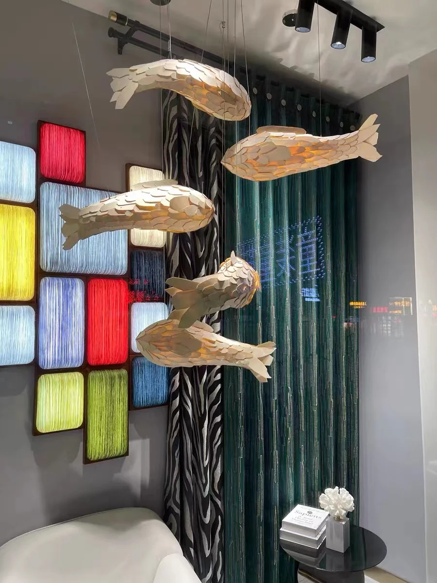 Lámpara LED brillante de pared de pez de madera de estilo chino, creativa, hecha a mano, 12W, iluminación para escalera y sala de estar