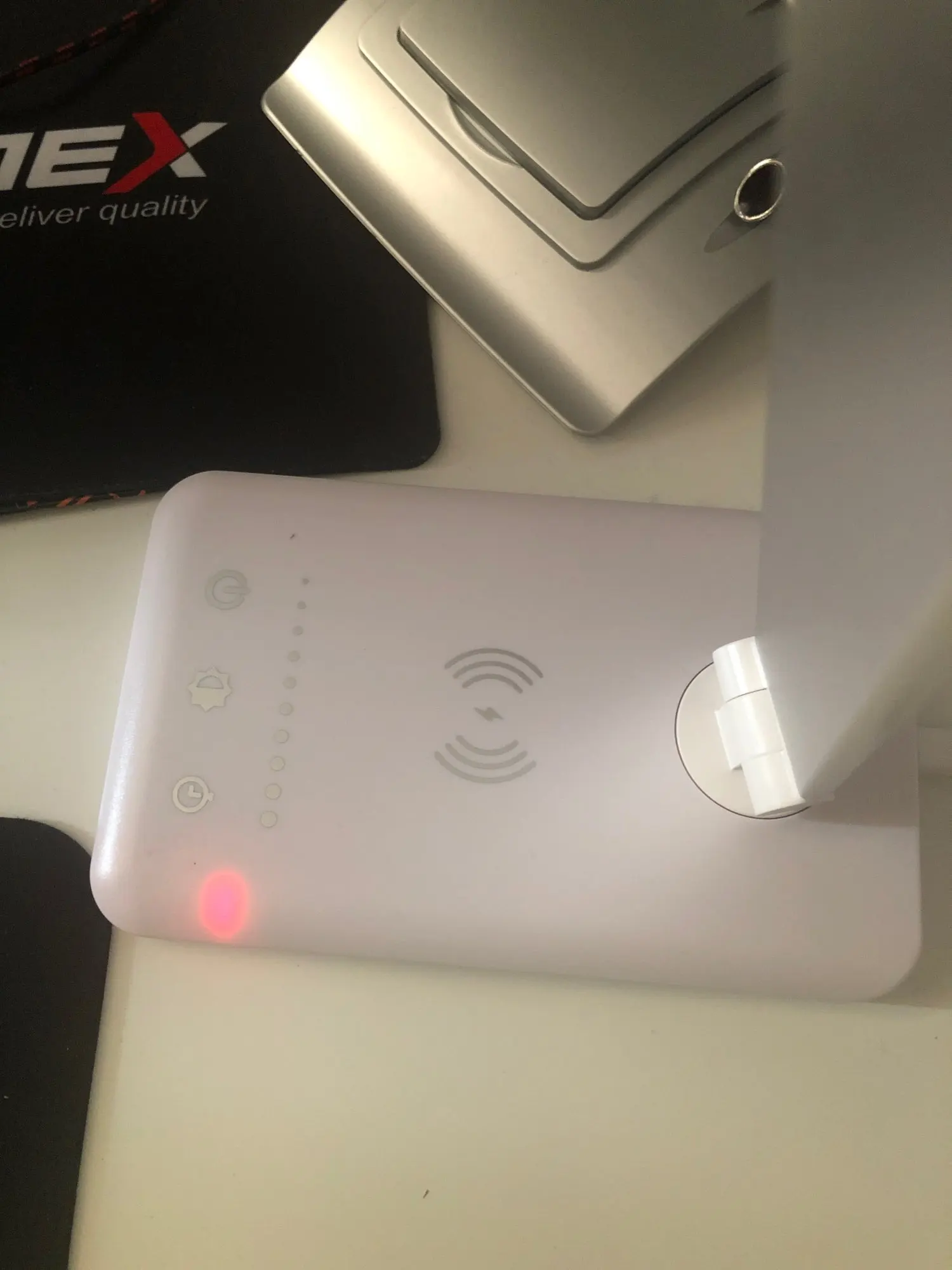 Buen producto. Tiene distintos tipos de luz y de intensidad, además puedes cargar el móvil, en mi caso por USB, ya que la carga inalámbrica no se puede hacer con cualquier móvil. Lo pedí el 23/12 y ha llegado el 30/12.