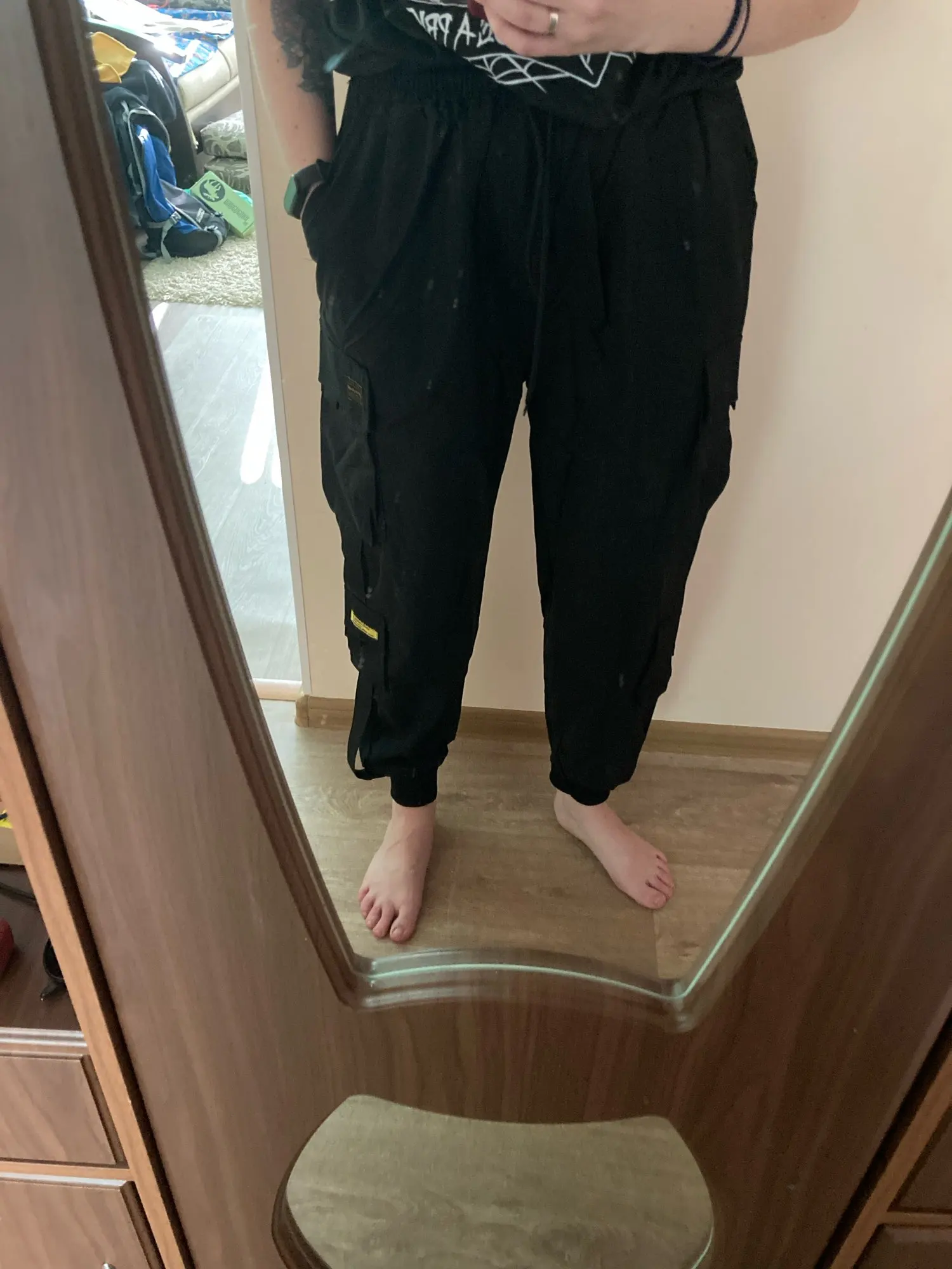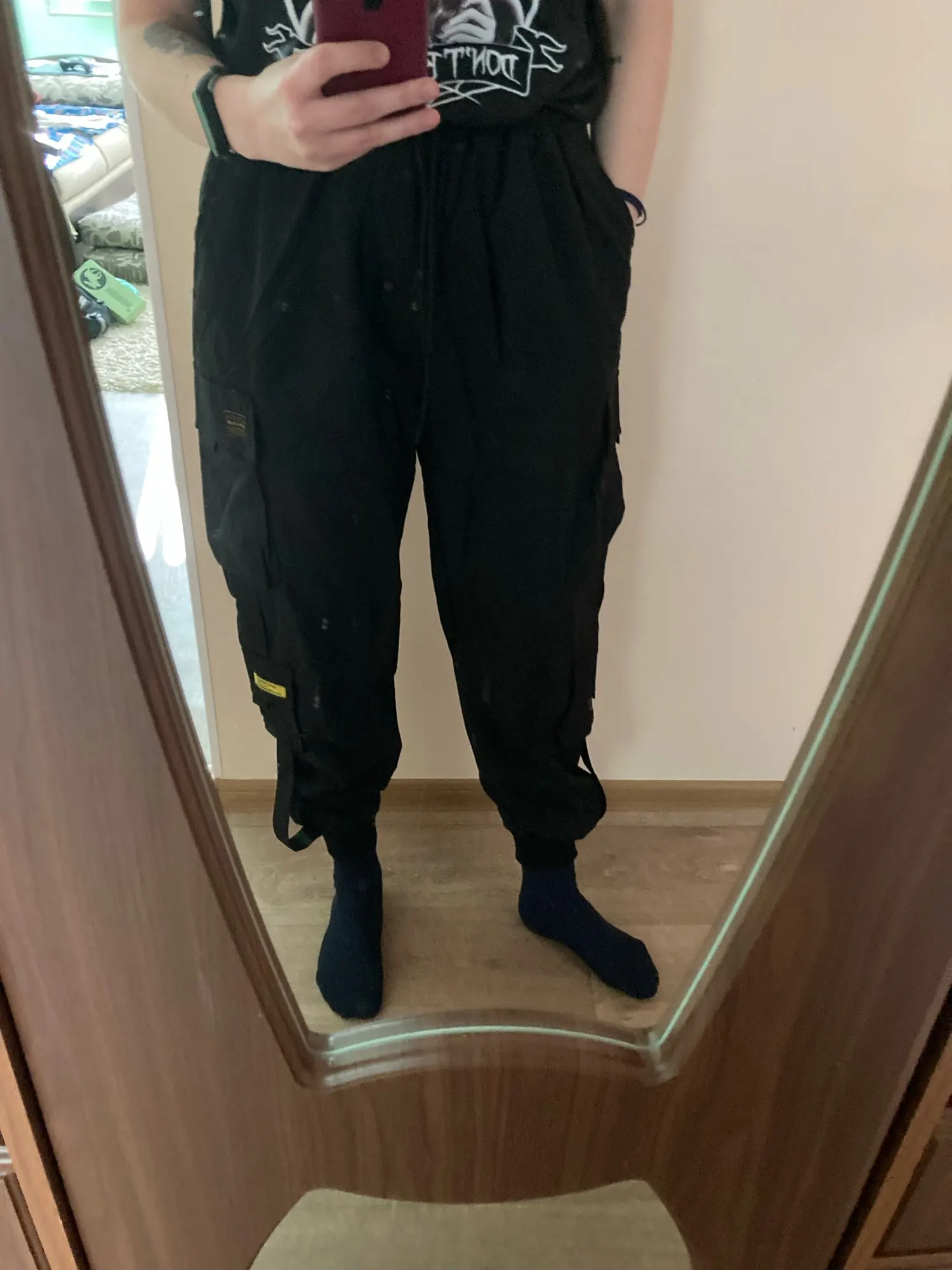 Las mujeres pantalones de carga Cinta Negra bolsillo Jogger cintura elástica ropa de calle alta pantalón Harajuku Punk pantalones femeninos pantalones de harén