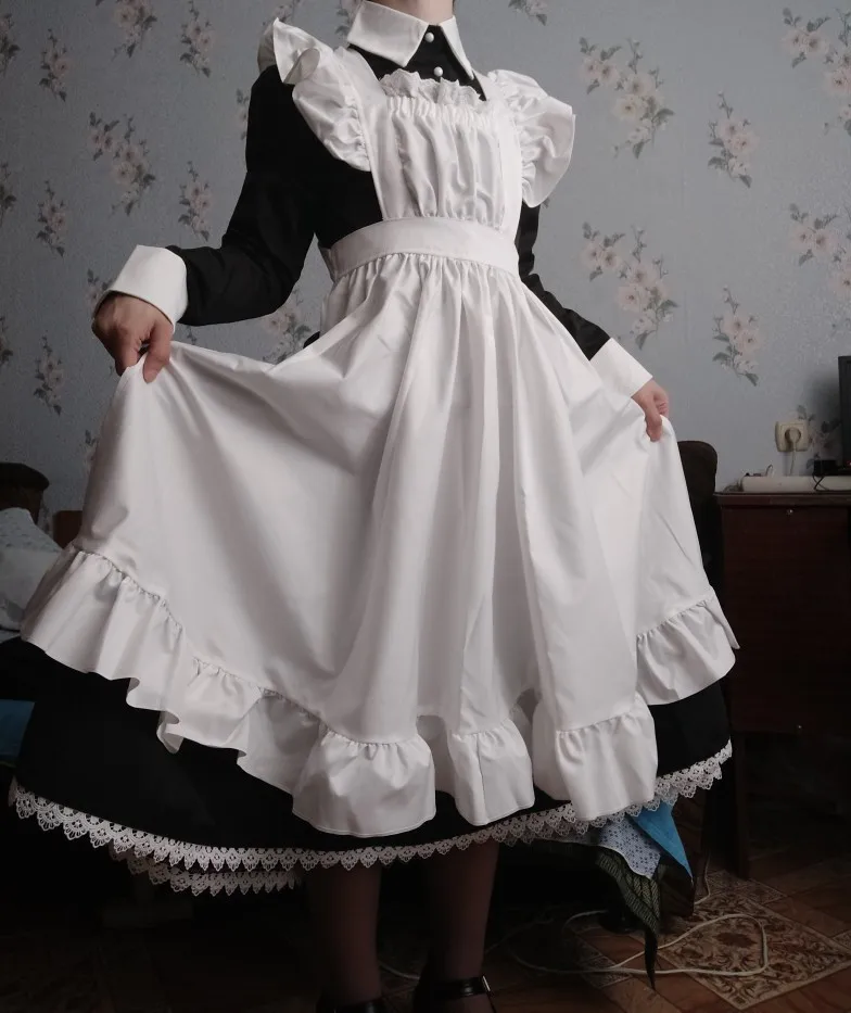 Las mujeres traje de sirvienta Anime vestido largo tribunal francés vestido Lolita vestidos Cosplay vestuario
