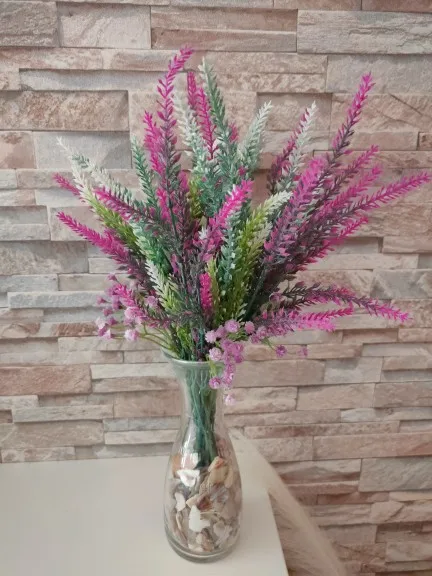Lavanda de plástico flores artificiales Provenza romántica púrpura ramo verde con hojas boda inicio decoración de la Mesa de falsa flor