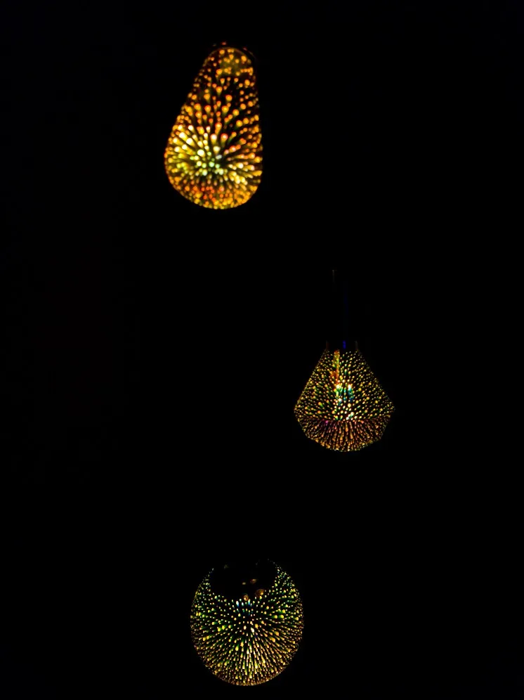 Led E27 bombilla de luz 3D decoración bombilla fuegos artificiales 110 220V ST64 G95 G80 G125 A60 botella de corazón de vacaciones luces de la novedad Navidad de la lámpara