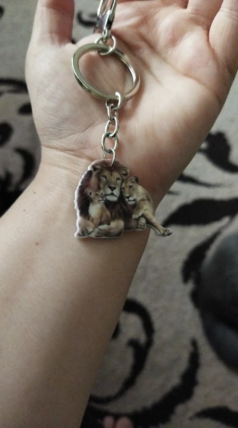León llavero de acrílico de los Leones de la familia interesante amor colgantes de animales no 3D llavero regalo de coche para mujeres coche clave bolso de los hombres de juguete