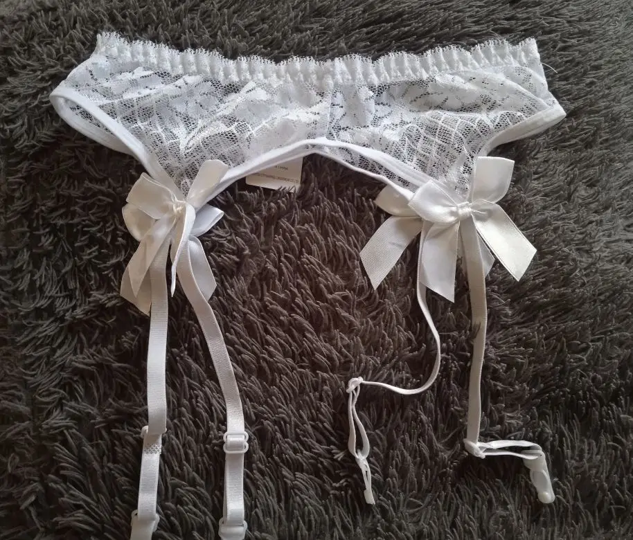 Liguero de encaje transparente Sexy Top medias al muslo liguero medias de cinturón Lencería Bondage liguero conjunto