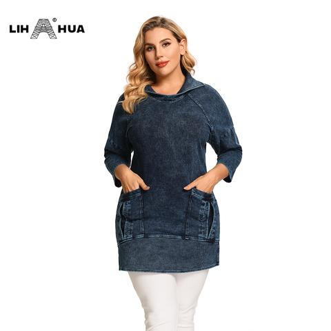LIH HUA-chaqueta vaquera ajustada para mujer, de talla grande, informal, estilo largo, prémium, elástico de punto