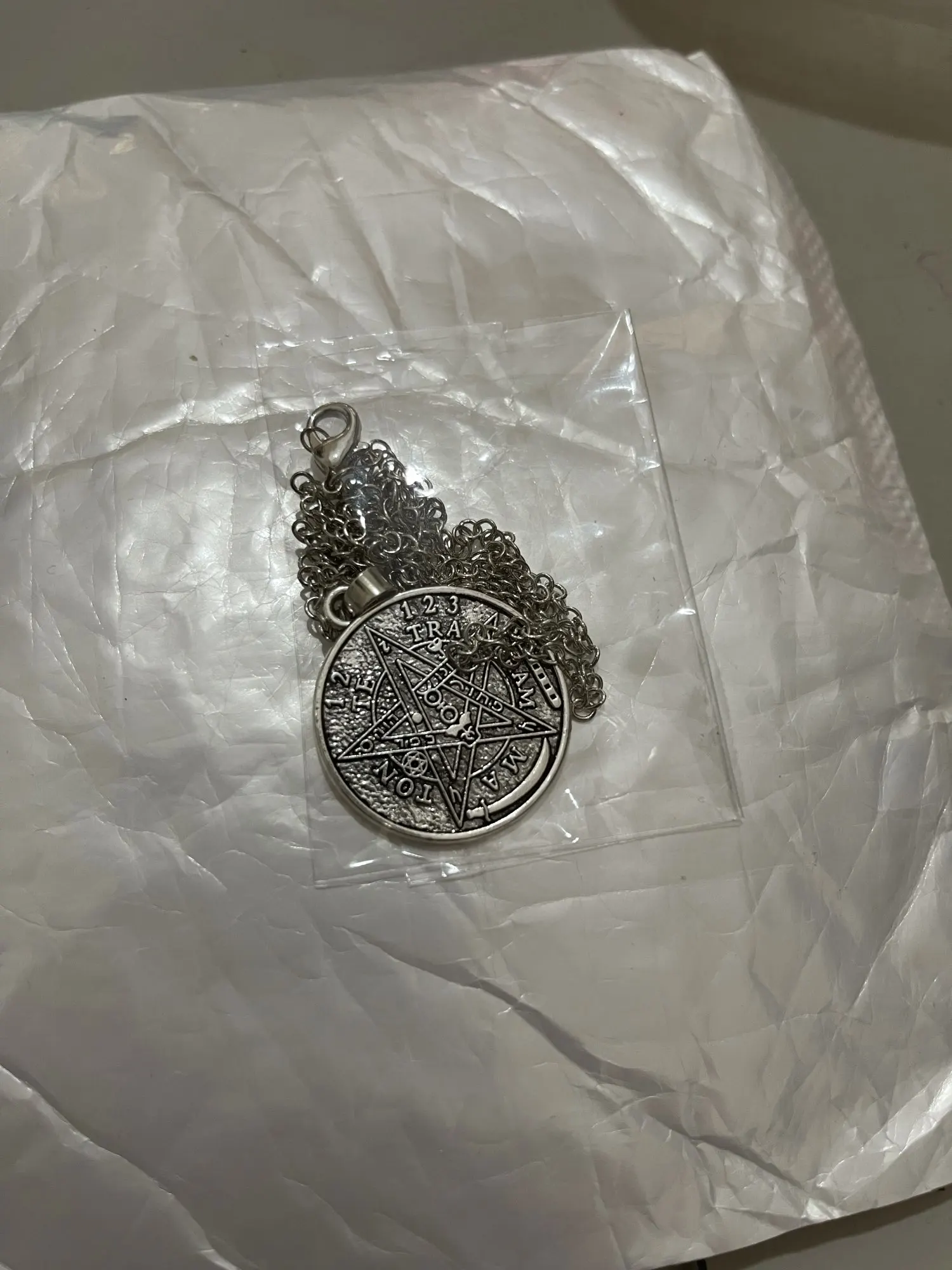 LIKGREAT plata antigua Satán tetragammaton pentagrama estrella de cinco puntas colgante redondo collar de joyas de amuleto de bruja accesorios regalos