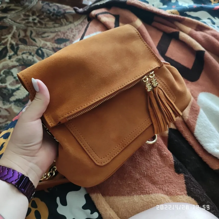 LilyHood, bolsos de hombro con flecos de cuero genuino para mujer, bolsos de moda de gamuza de vaca con borla, cadena marrón, multibolsillos, bolsos cruzados tipo cubo