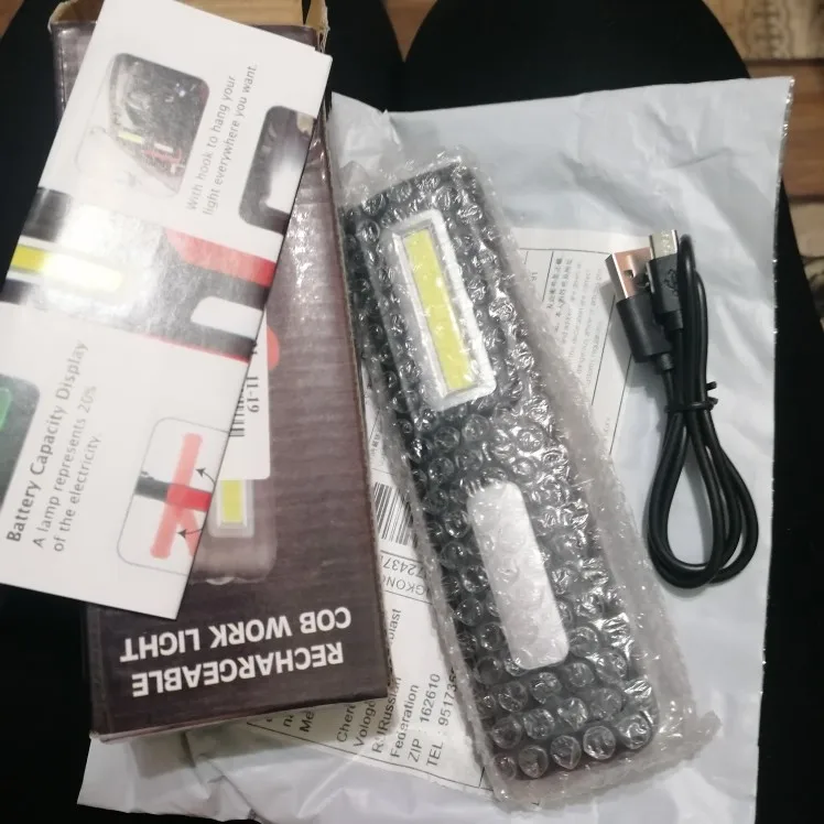Linterna LED recargable por USB, luz de trabajo, linterna de pie COB, gancho magnético con batería integrada, pantalla de potencia, lámpara de trabajo de reparación