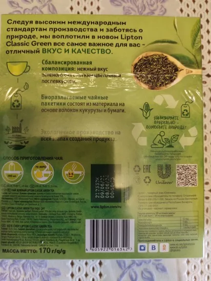 Lipton-juego de té verde en bolsas clásicas, set de té de regalo, 100 Uds.