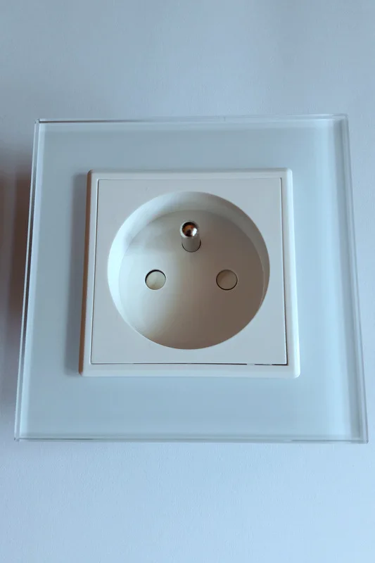 Livolo-Toma de corriente de pared, enchufe conforme al estándar de fabricación de Francia, VL-C7C1FR-11, panel de cristal blanco, CA 100 ~ 250V 16A, sin logotipo
