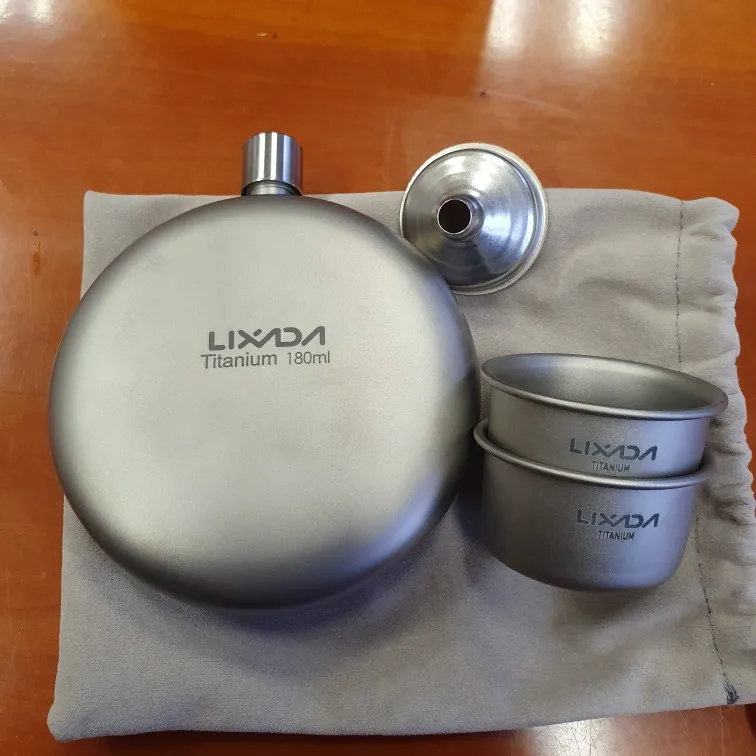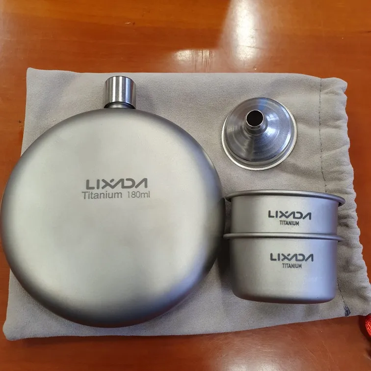 Lixada, Petaca de titanio a prueba de fugas, botella de vino de Whisky con Alcohol, con juego de tazas para Camping al aire libre, mochila de viaje, Picnic