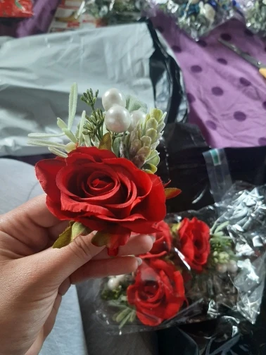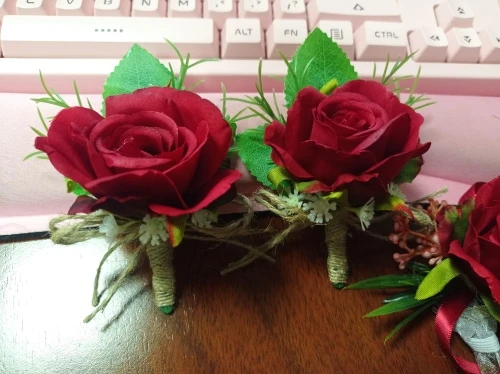 LKY Fr botonniere-pulseras para dama de honor, accesorios matrimoniales de seda y rosas rojas, con ojales y flores