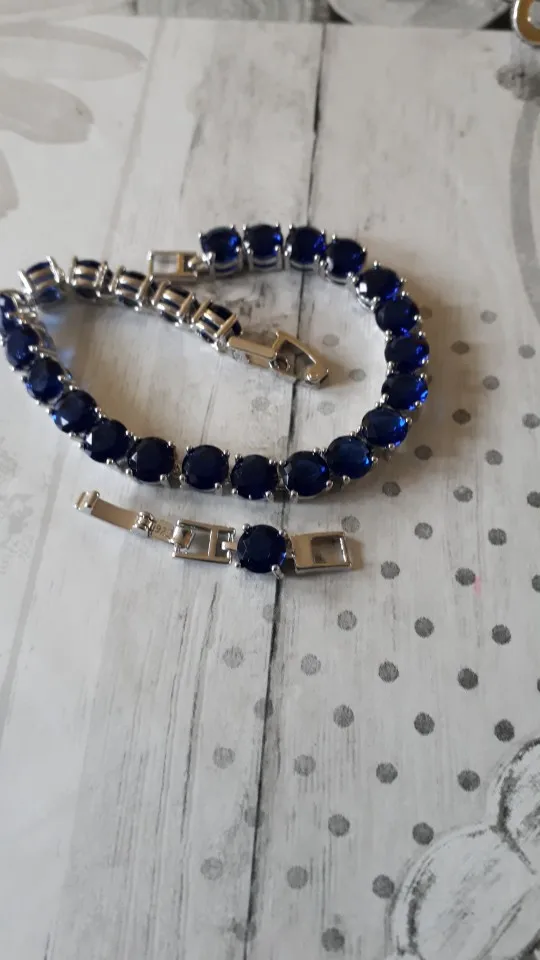 Llamativa pulsera de eslabones de circonia azul para mujer, joyería de Color plateado, caja de regalo gratis SL39