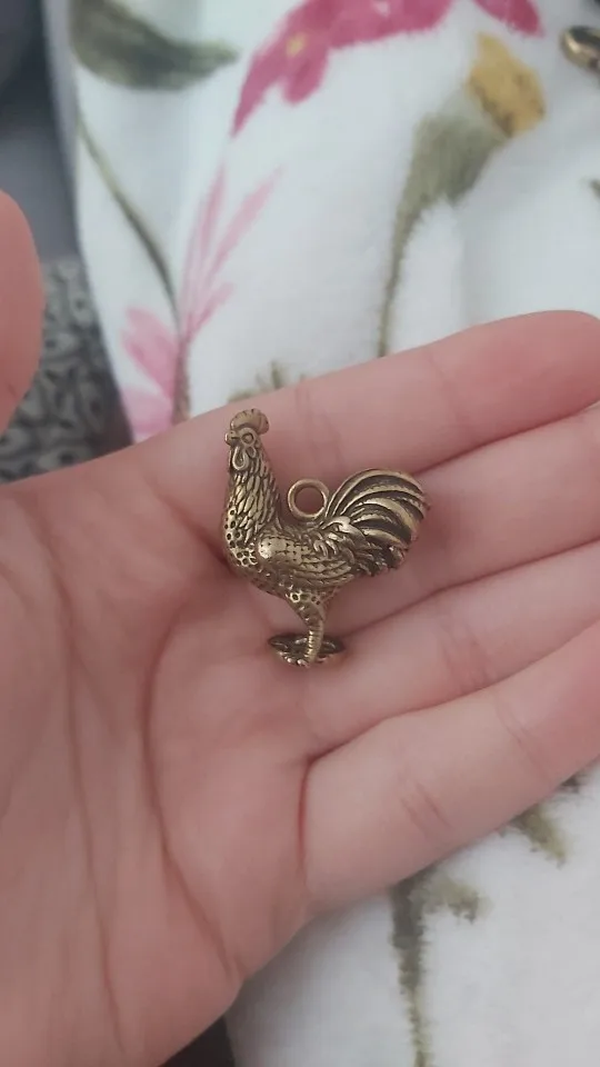 LLavero de gallo de latón hecho a mano, bolso de gallina chino del zodiaco, colgante para llaves de coche, anillos regalos