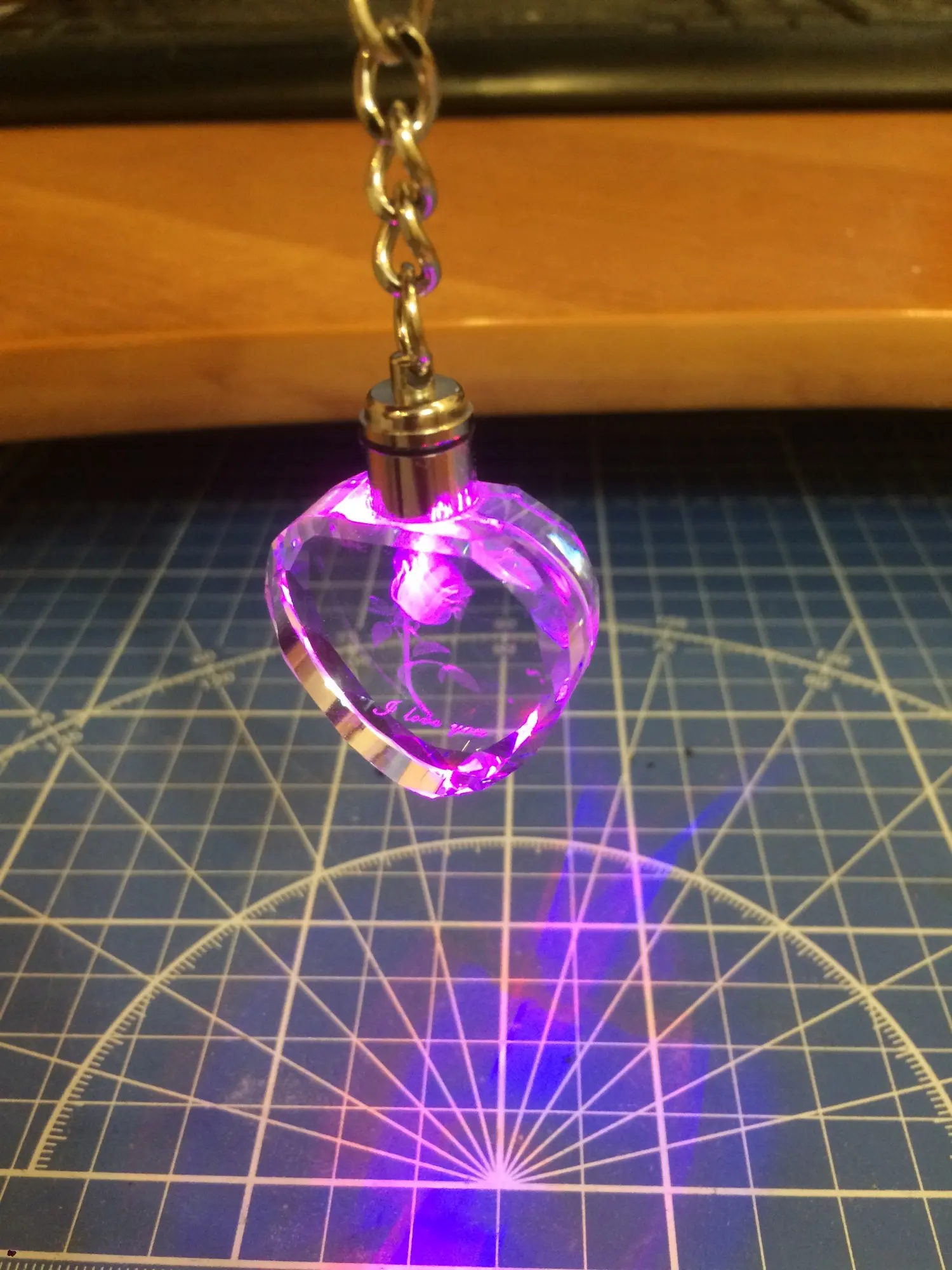 LLavero de luz LED rosa de cristal de hadas, llavero con forma de corazón de amor, para regalo de Día de San Valentín