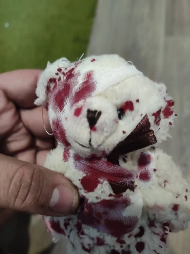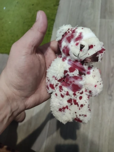 LLavero de oso de peluche con sangre Punk, llavero de oso de Halloween, Animal herido, muñeco de oso, A2UA