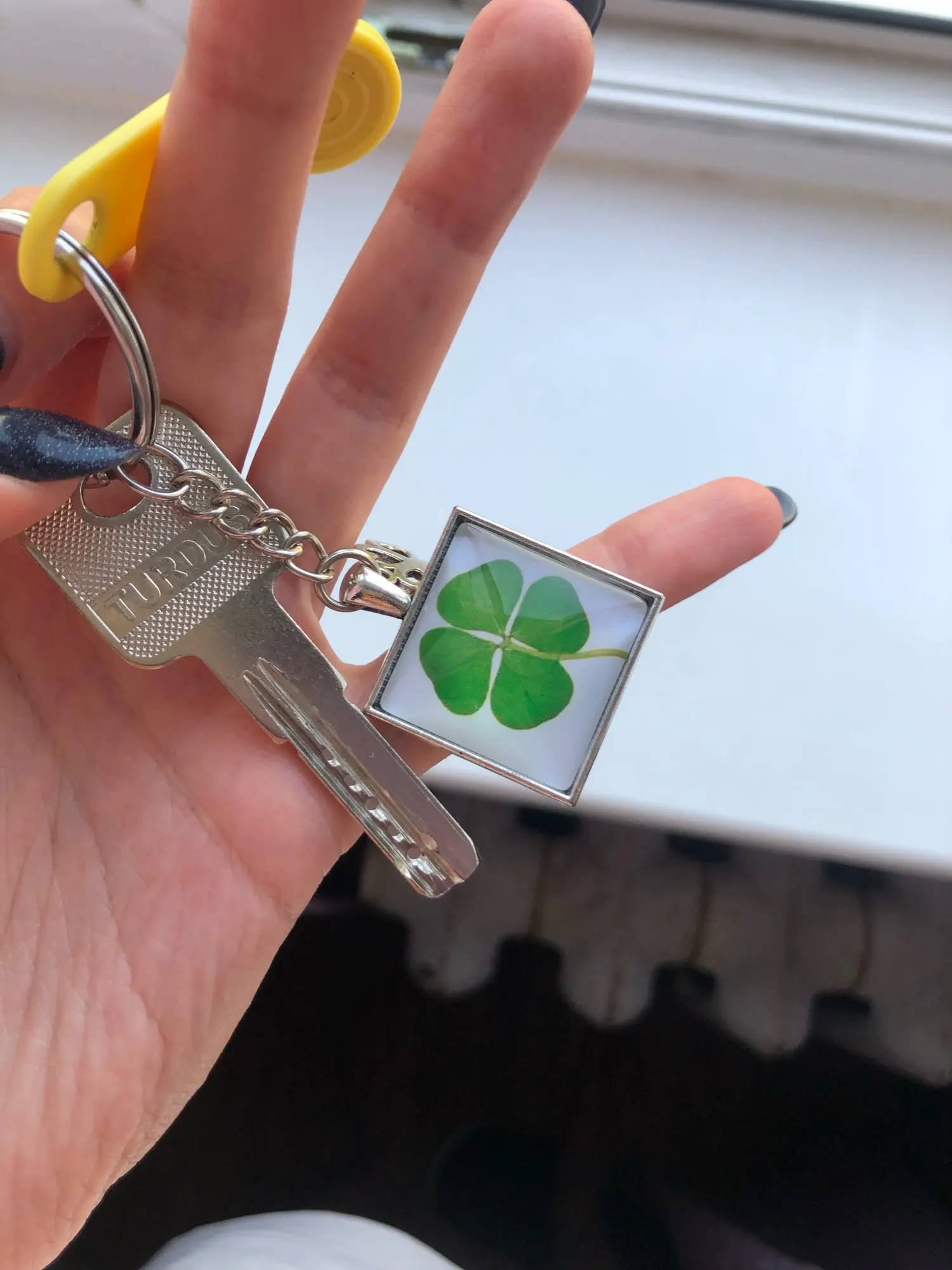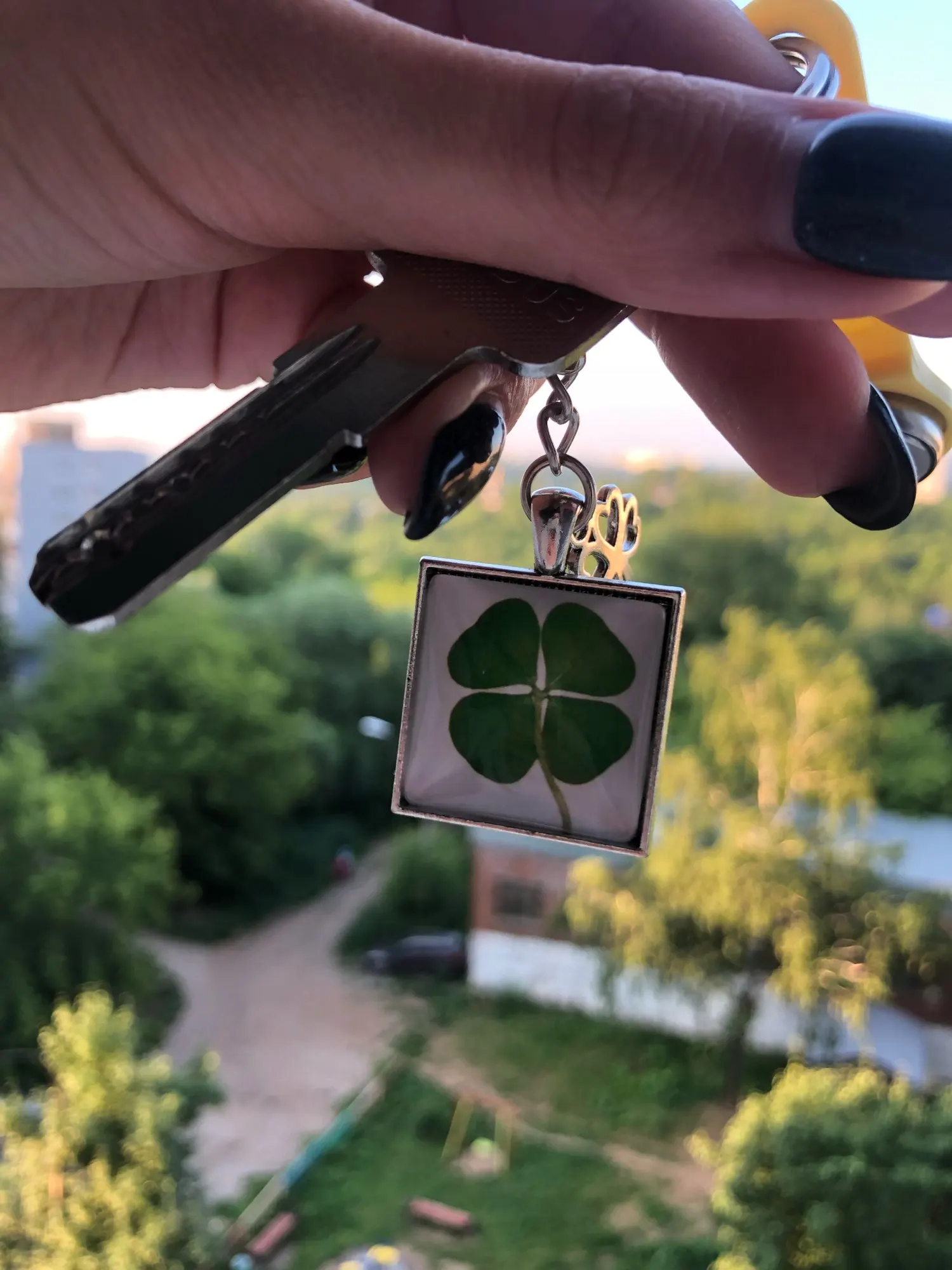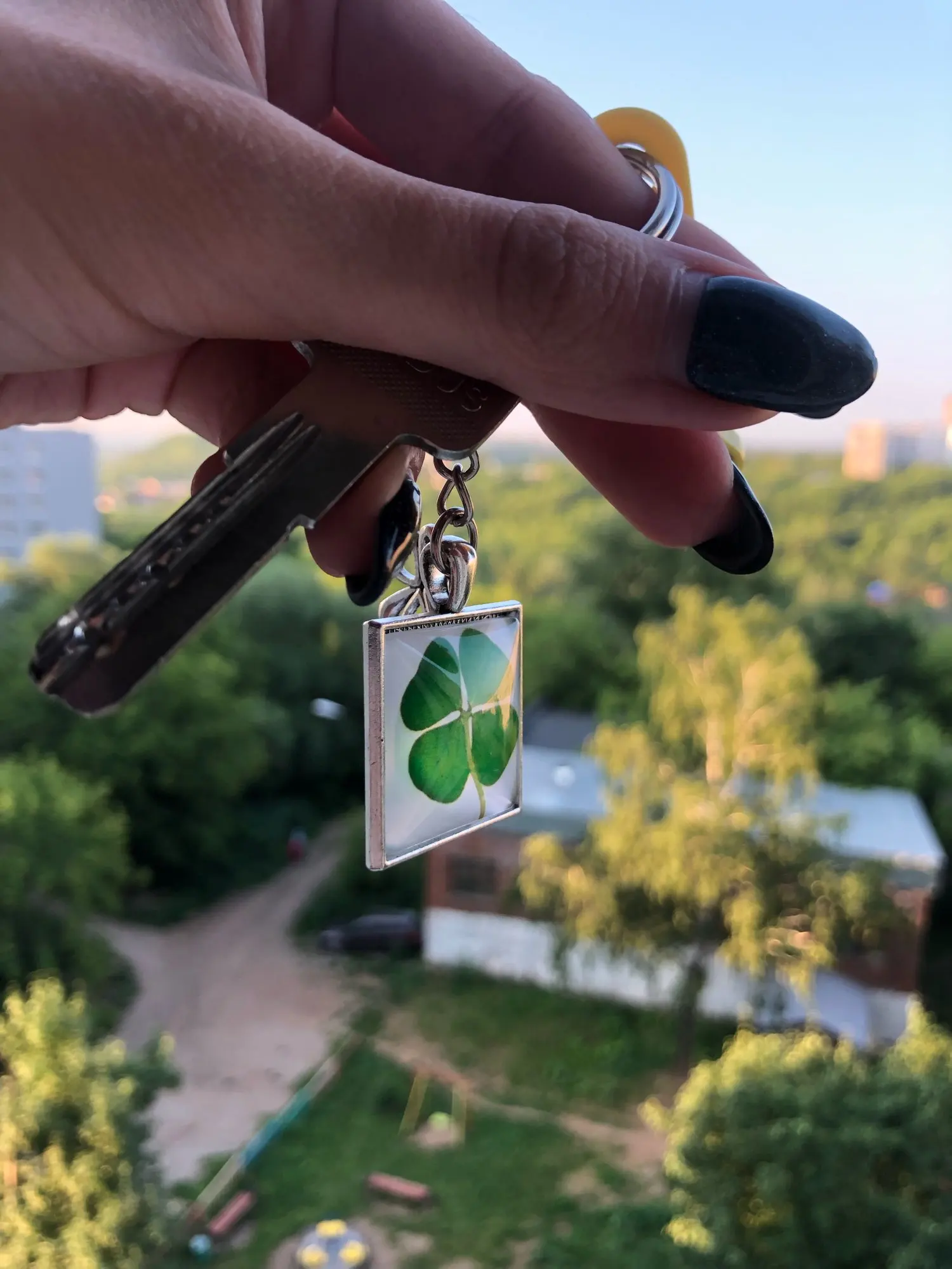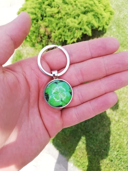 LLavero de trébol de cuatro hojas, bola de cristal de trébol, colgante de doble cara, regalo de llavero de Metal, joya de la suerte para hombres, triangulación de envíos