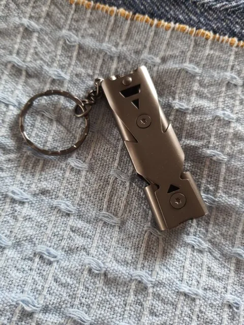 Llavero portátil de alto decibelio para exteriores, silbato de acero inoxidable de doble tubería, herramientas multifunción de supervivencia y emergencia, 1 Uds.