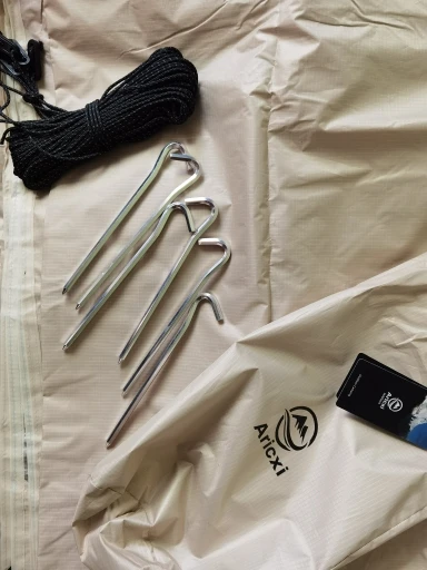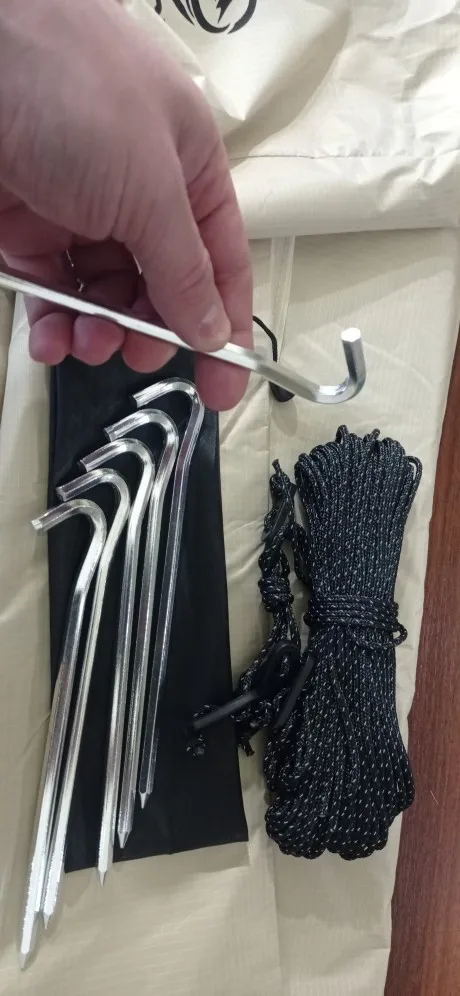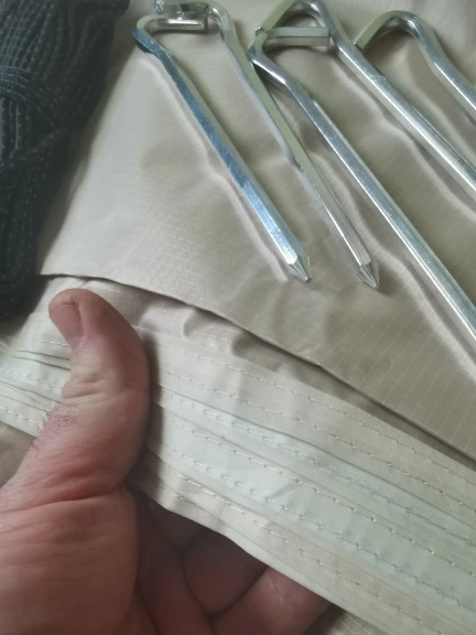 Parece estar muy bien acabada. Buenas suturas. Pesa casi 1 kg con piquetas y cordones. Parece resistente.