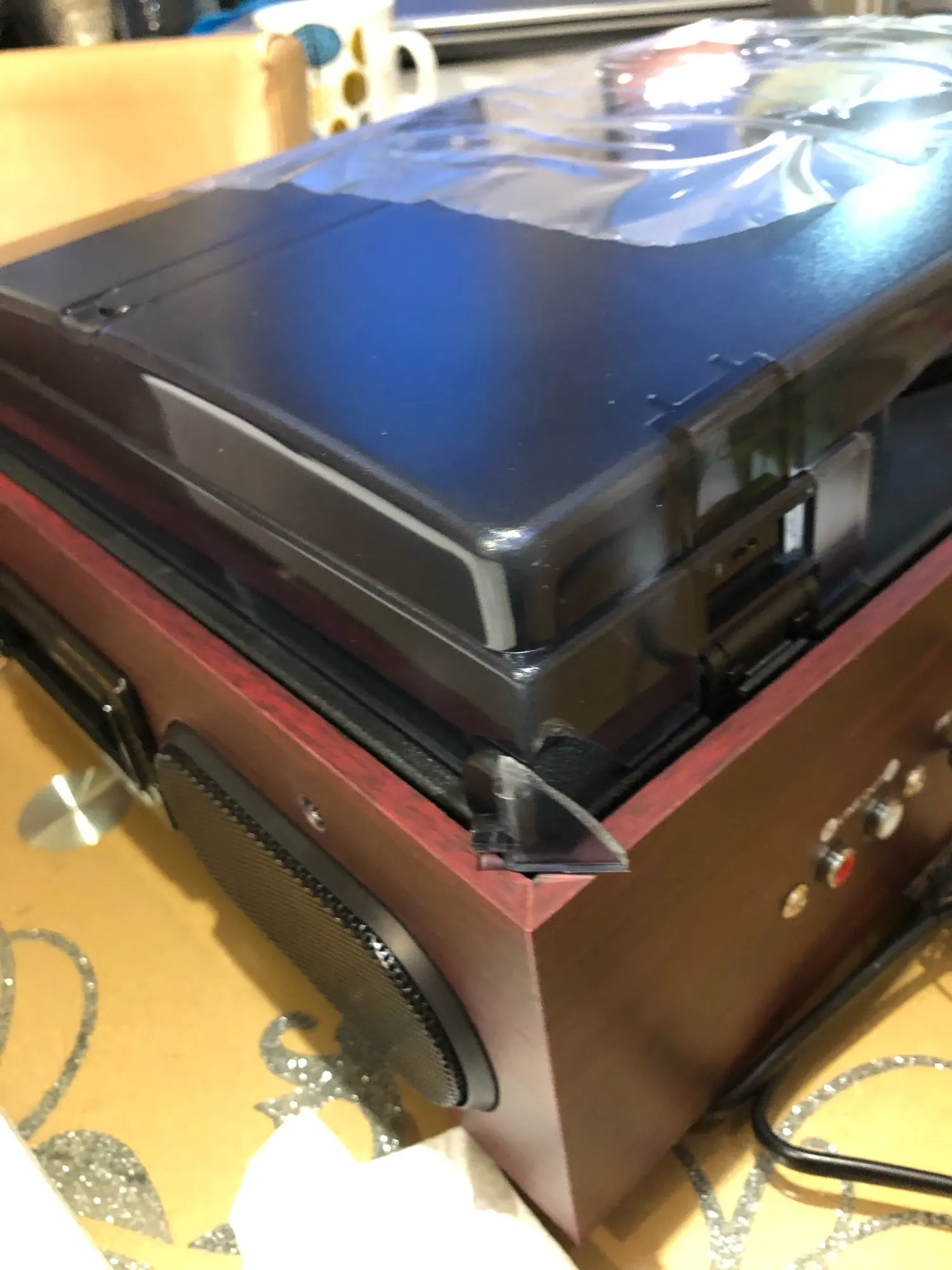LoopTone estéreo Phono los tocadiscos de vinilo LP jugador con AM/FM Radio USB/SD Aux Cassette MP3 grabadora Headphone Jack