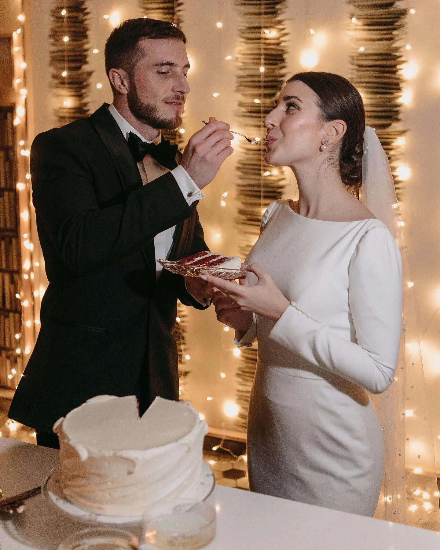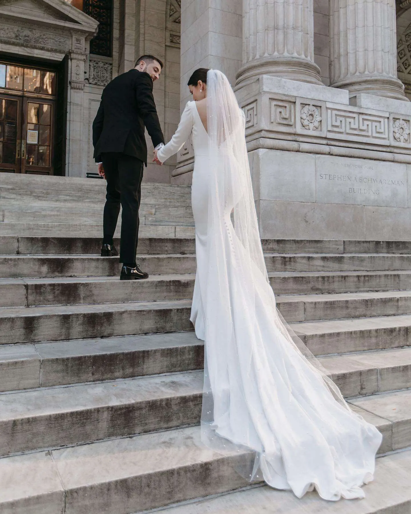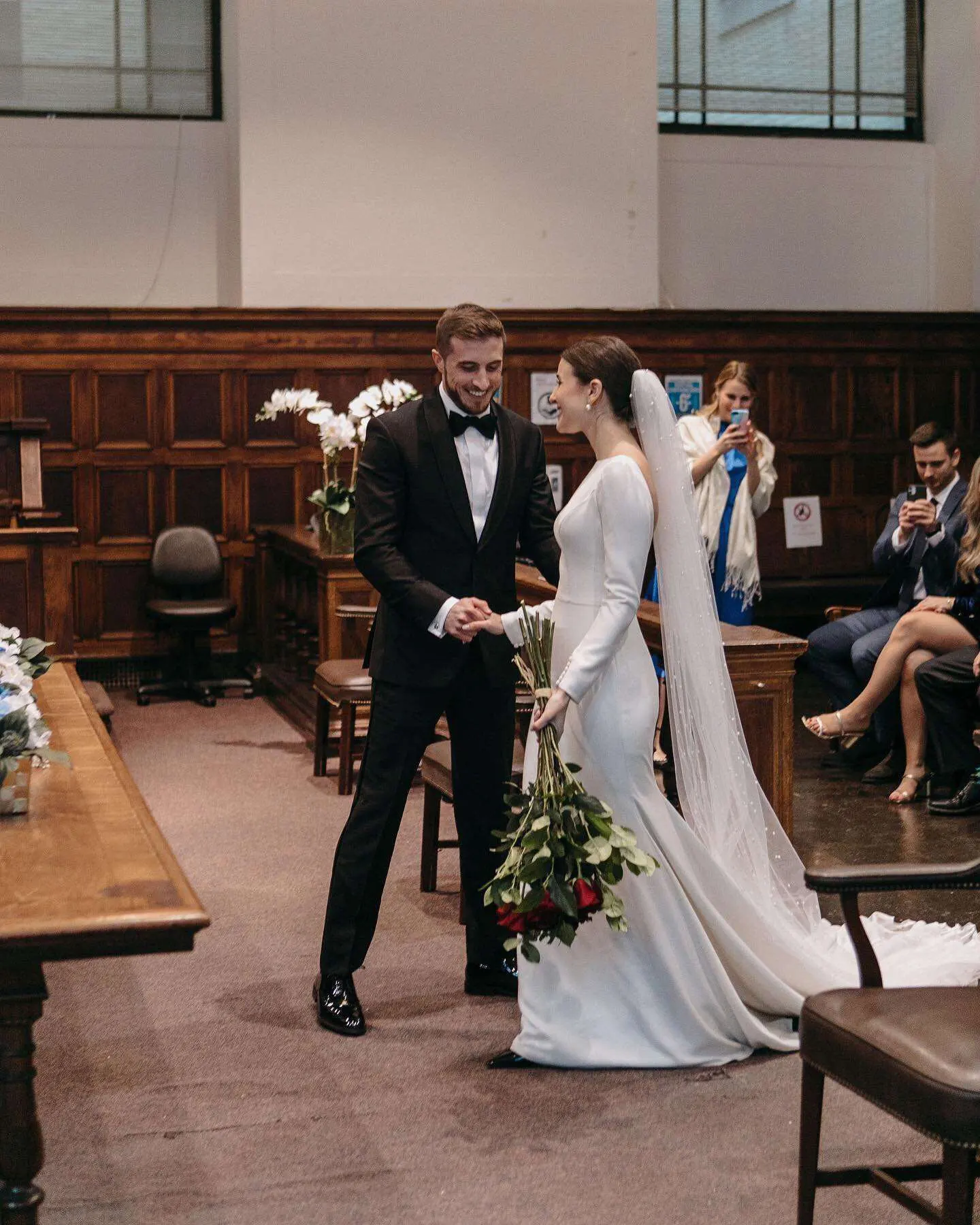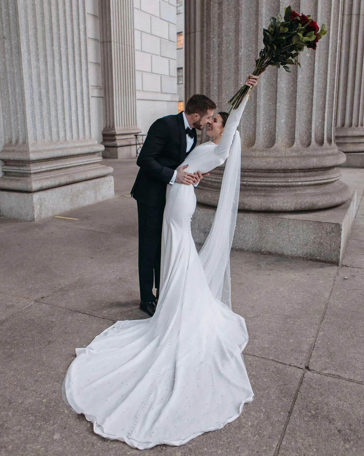 LORIE-vestido de novia de manga larga con cola abierta, vestido de novia elegante y sencillo de satén con cuello redondo y cola de sirena de talla grande, 2022