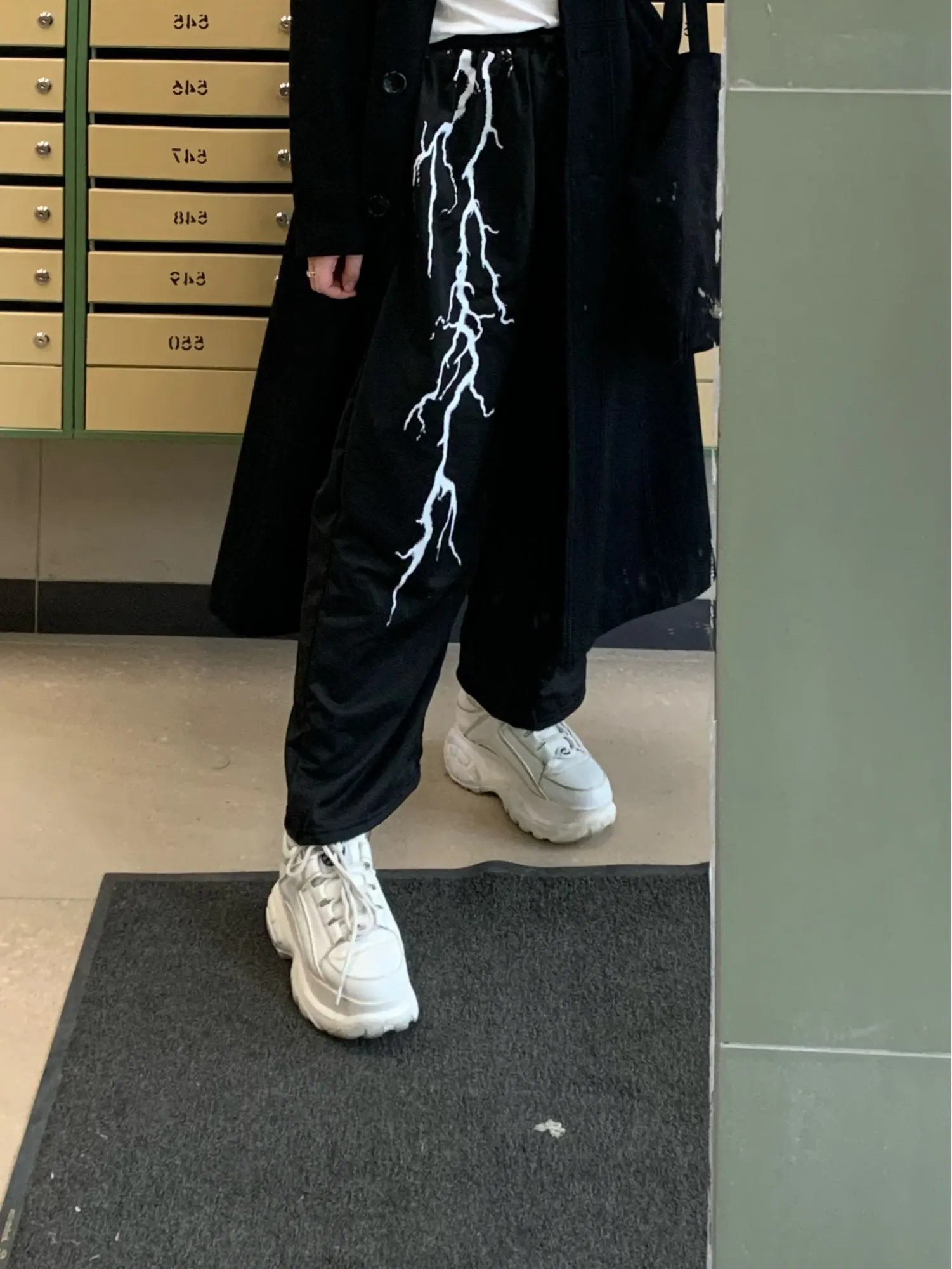 Los hombres pantalones casuales oscuro estampado de rayos suelto todo-Partido retro pantalones calle recto ancho pierna Pantalones deportivos Hombre Pantalones de otoño